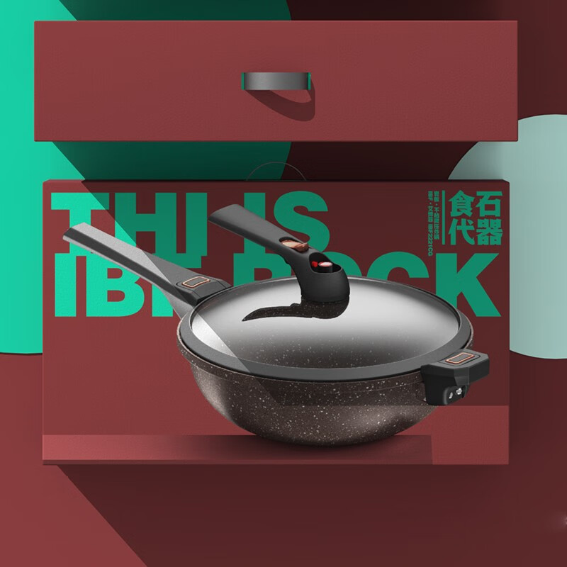 艾博菲 石器食代·岩板·不粘微压炒锅32cm IBF2221CG 6970070179019