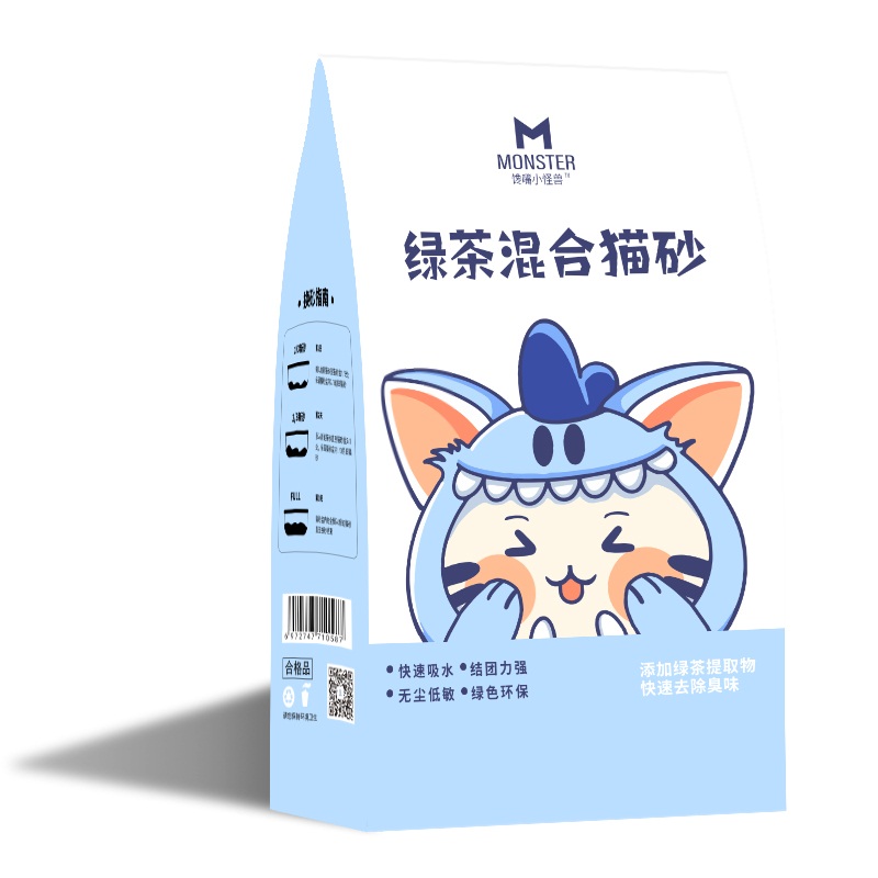 馋嘴小怪兽 绿茶豆腐混合猫砂2.4kg**4袋