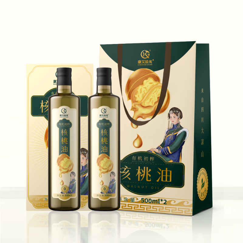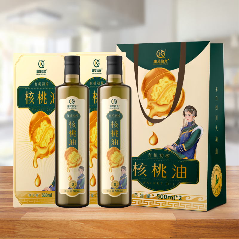 康艾拾光 有机初榨核桃油500ml*2礼盒款(天地盖)6974522680214