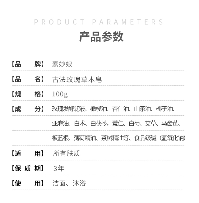 素妙娘古法玫瑰草本皂100g*3 手工皂 新疆西藏不发货