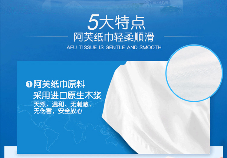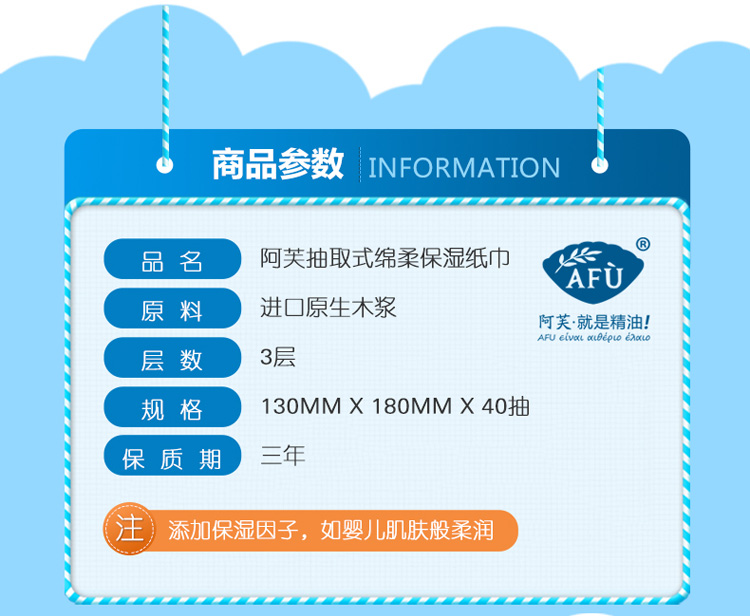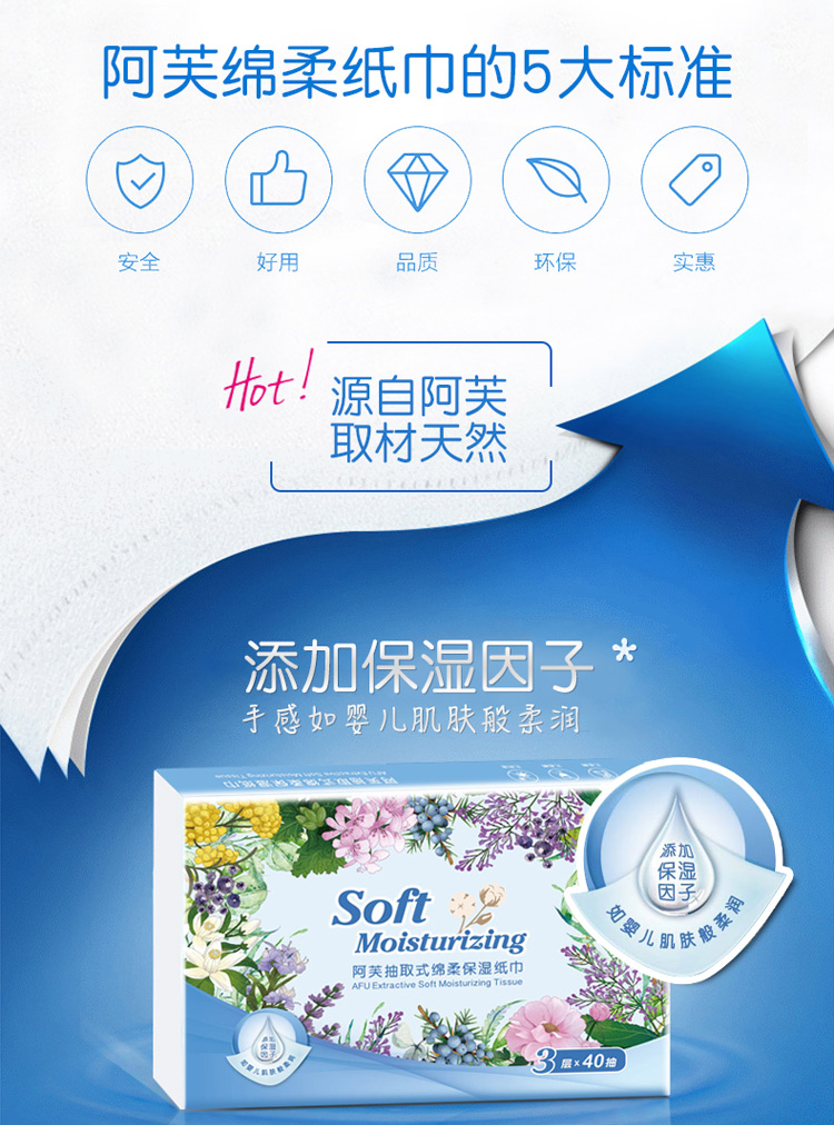商品名称:阿芙(AFU) 抽取式绵柔保湿纸巾40抽/包 35包 AFU961-4