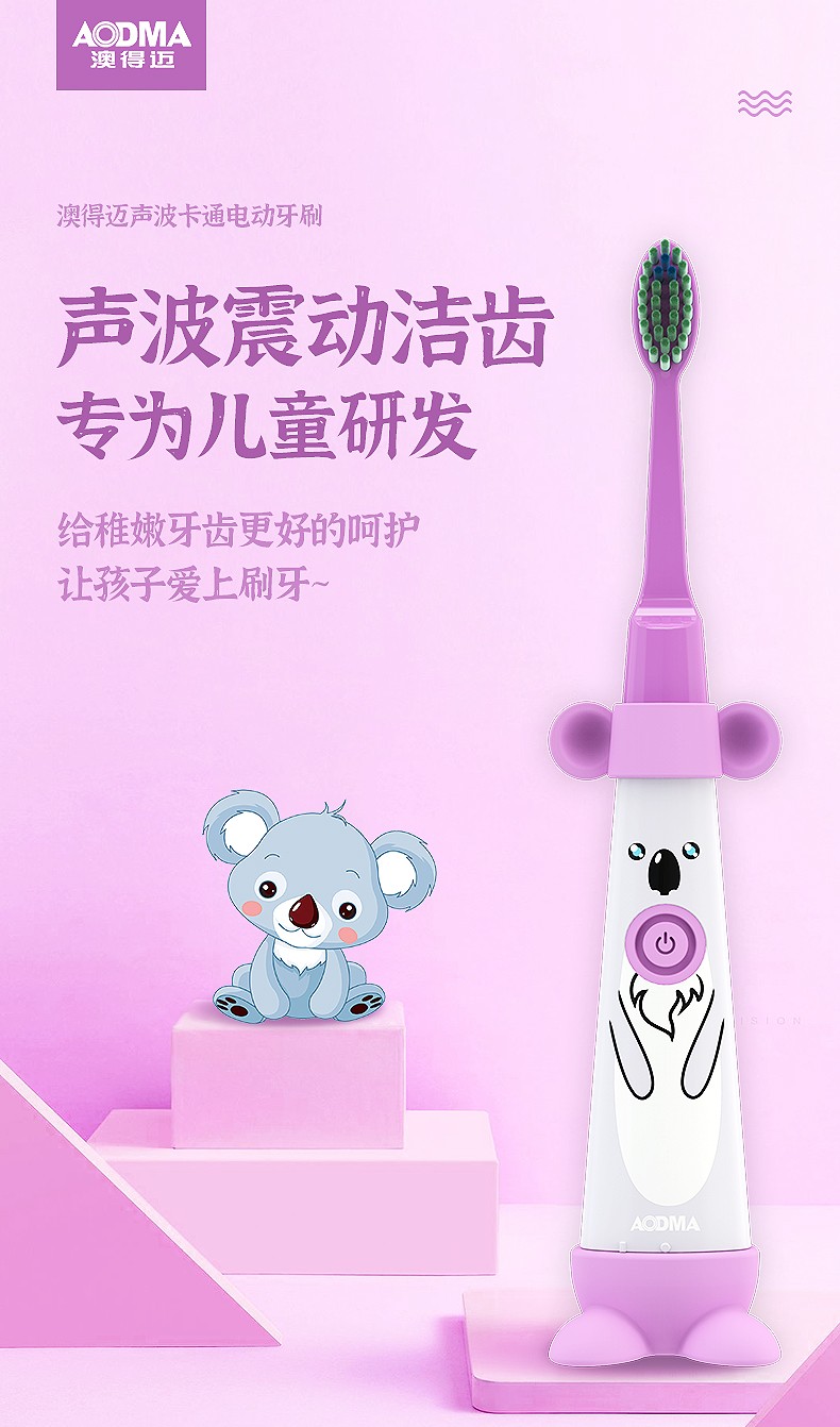 澳得迈(AODMA)电动牙刷 儿童成人软毛 口腔护理 清洁牙齿 不伤牙龈DY-119Kaola 粉色 6970527760210