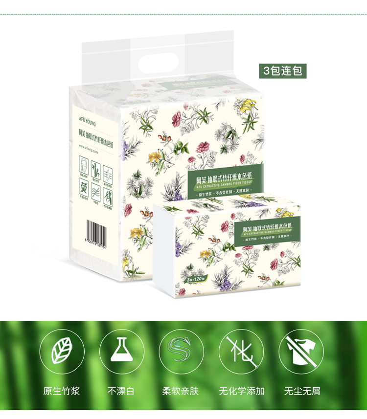 商品名称:阿芙(AFU) 抽取式竹纤维本色纸120抽3包/提 8提