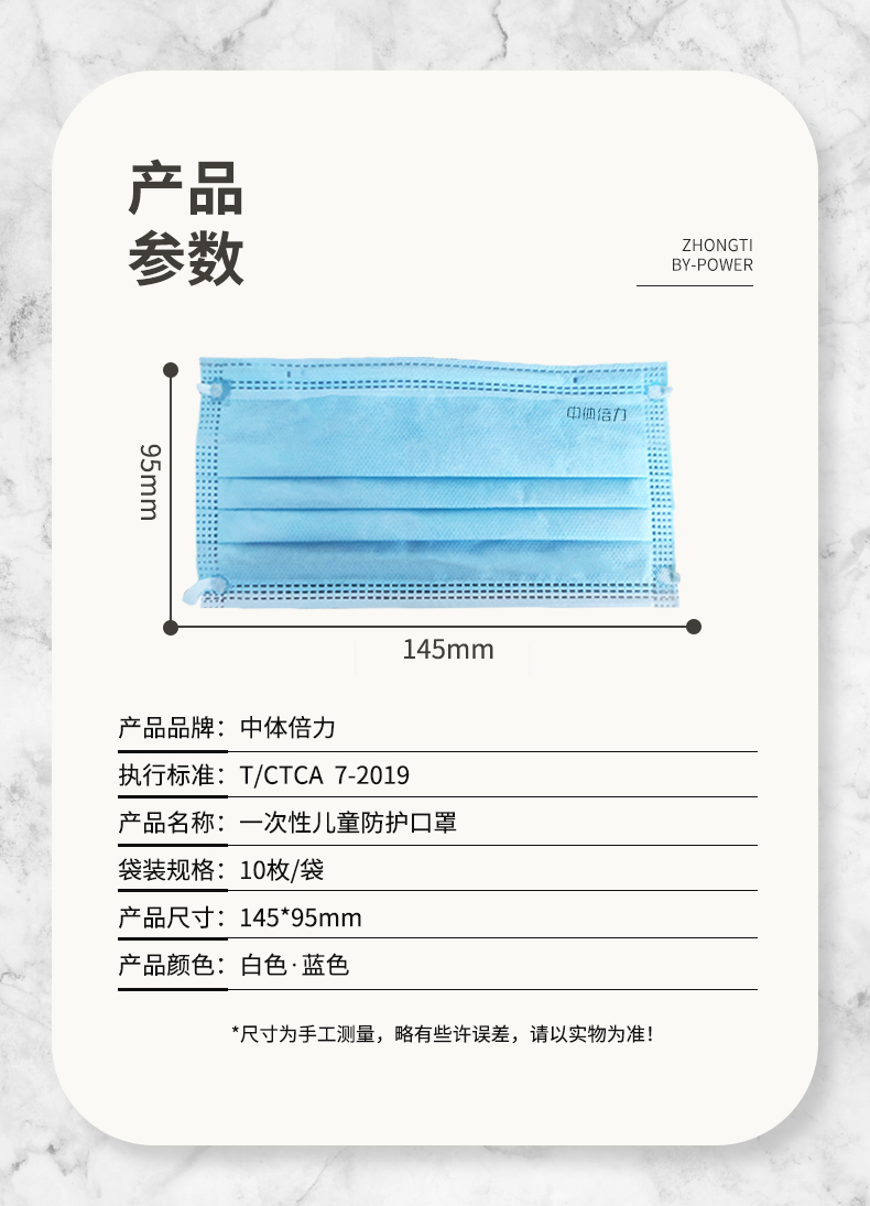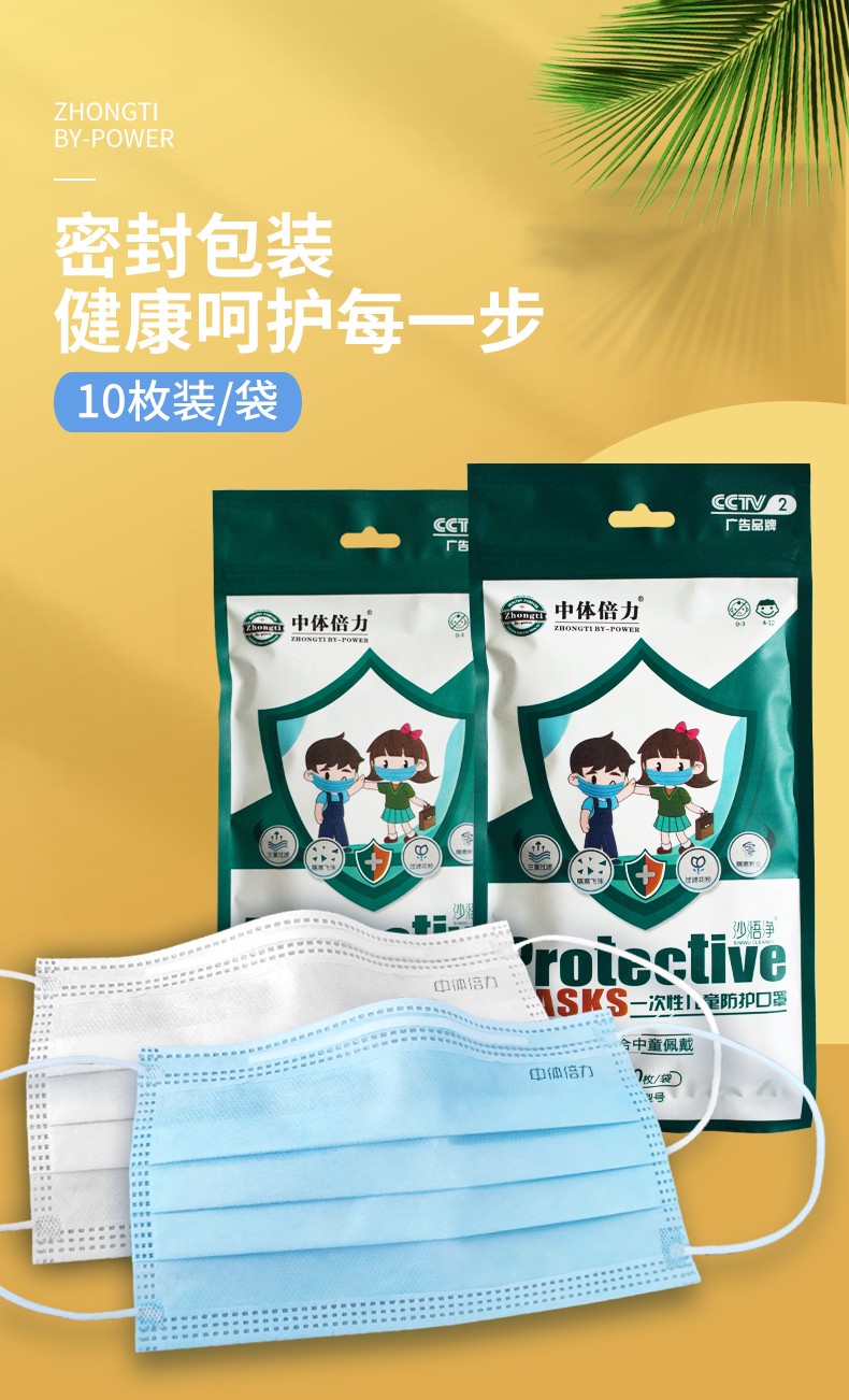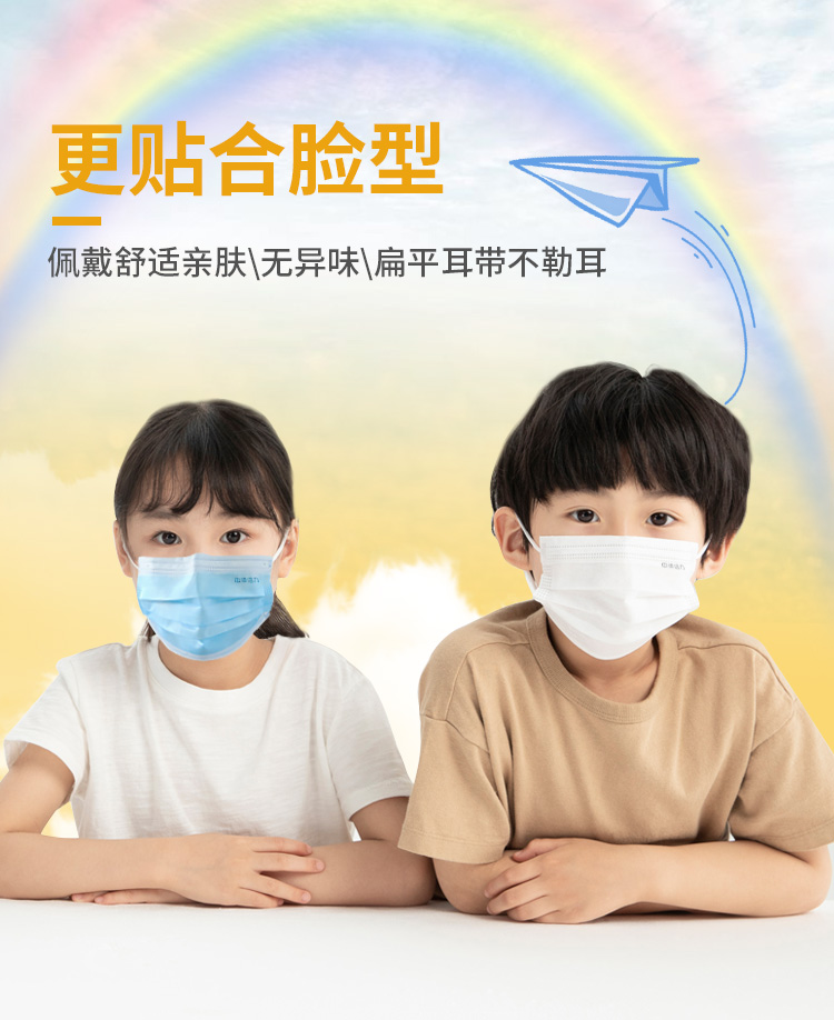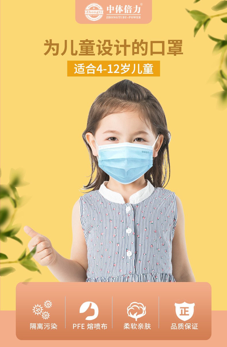 商品名称:中体倍力 9500-H2 儿童款 一次性防护口罩(耳戴式)2包(10枚/包)白色(新疆,西藏,青海,贵州不发货)