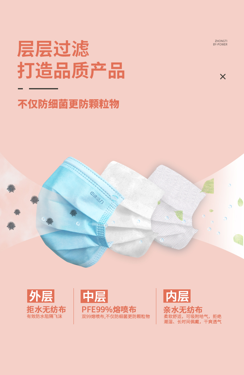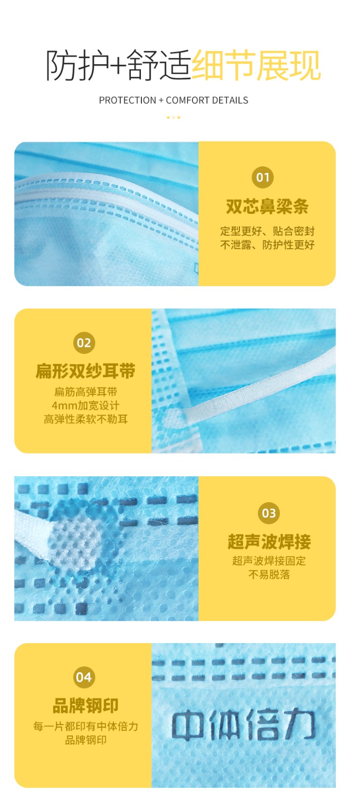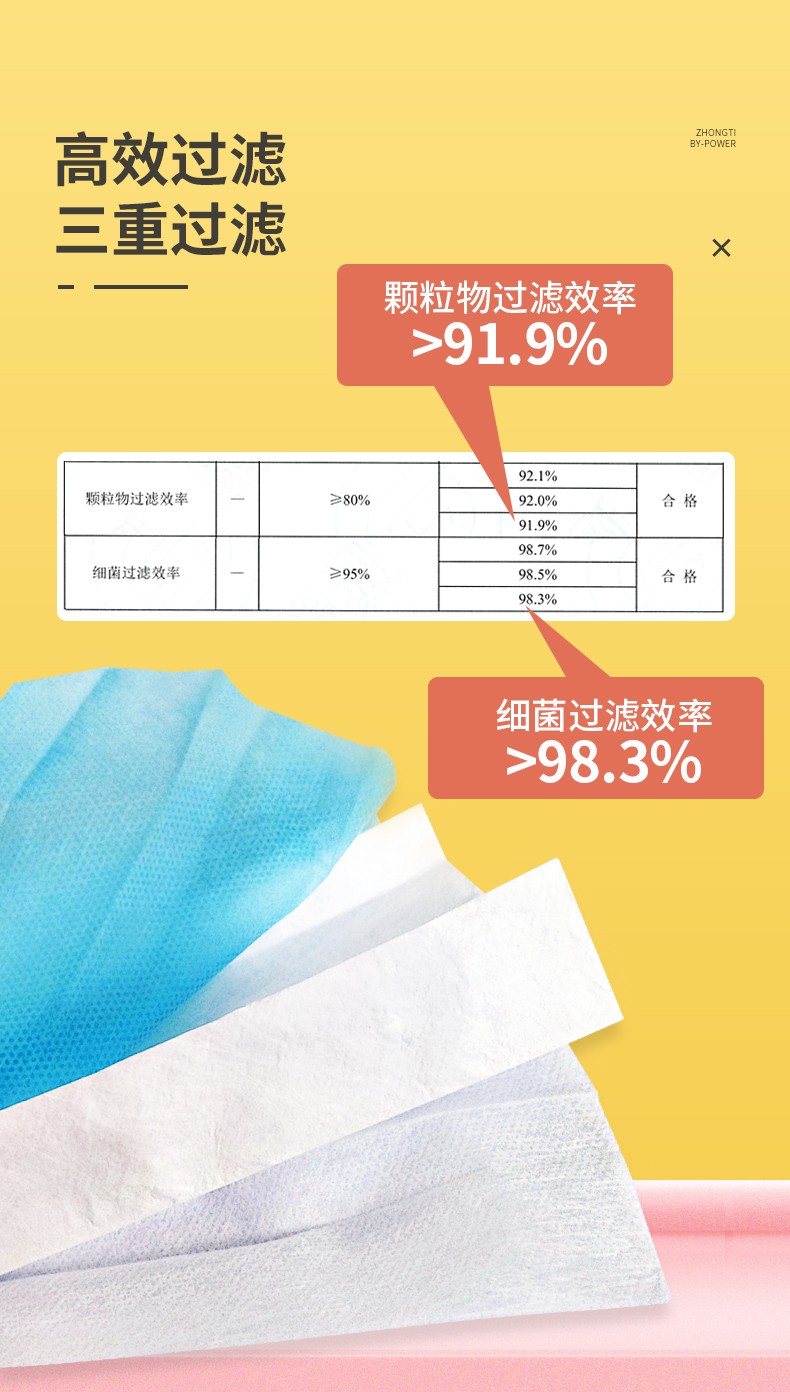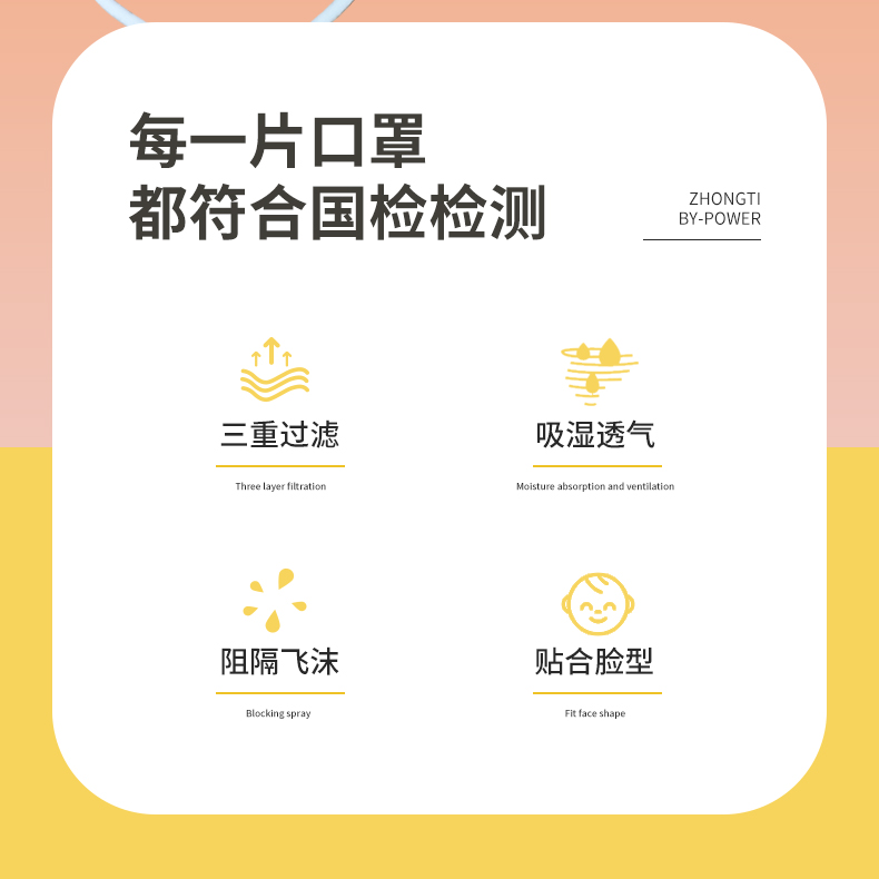 商品名称:中体倍力 9500-H2 儿童款 一次性防护口罩(耳戴式)2包(10枚/包)白色(新疆,西藏,青海,贵州不发货)