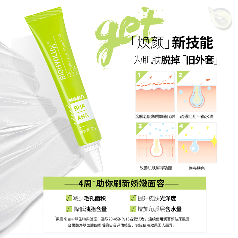 商品名称:润百颜 玻尿酸复合果酸净肤面膜 10g*5支/盒(绿皮书)(新疆西藏不发)