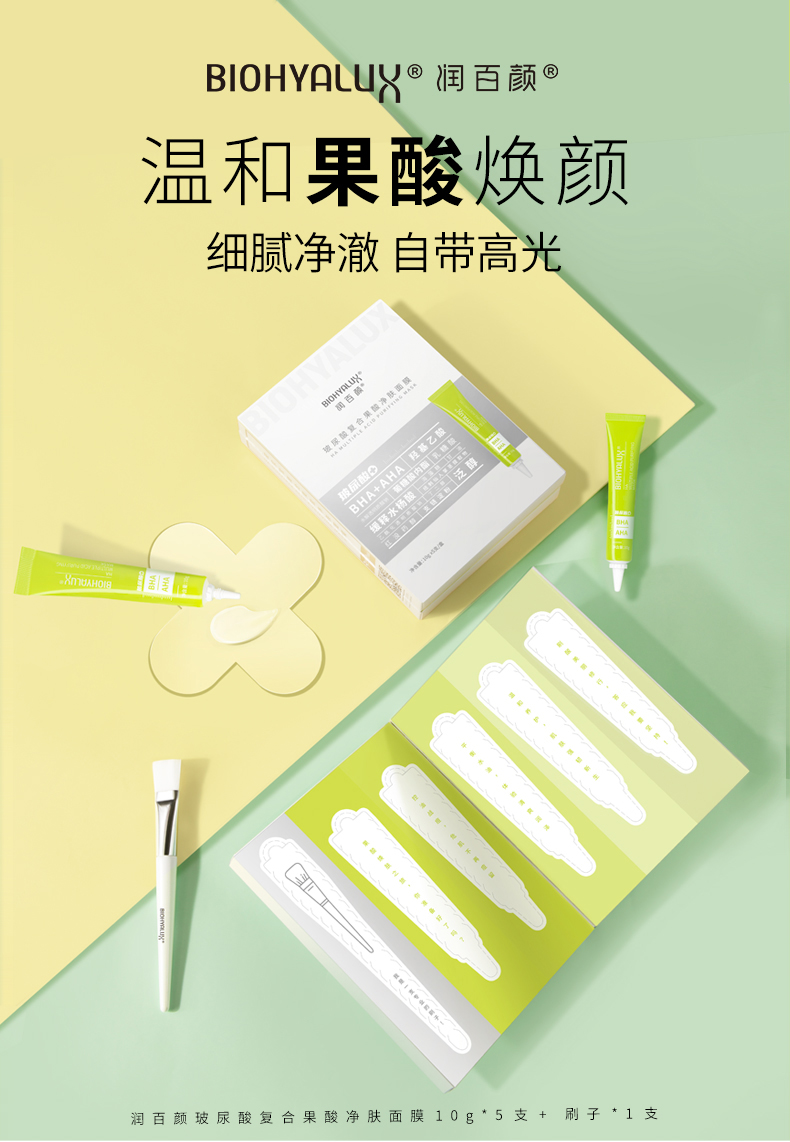 润百颜 玻尿酸复合果酸净肤面膜 10g*5支/盒(绿皮书)(新疆西藏不发)