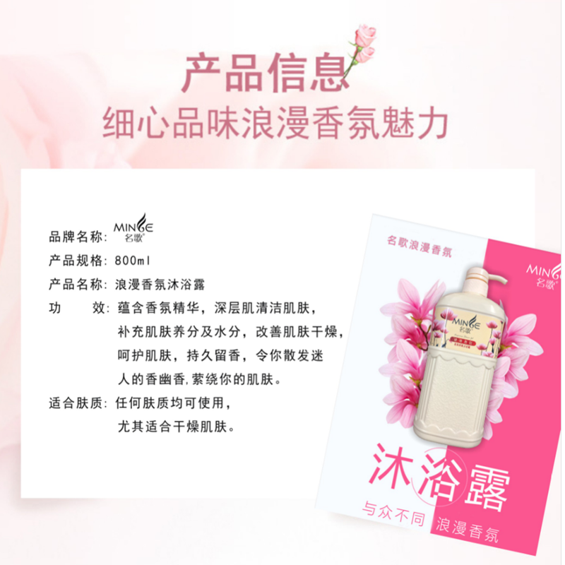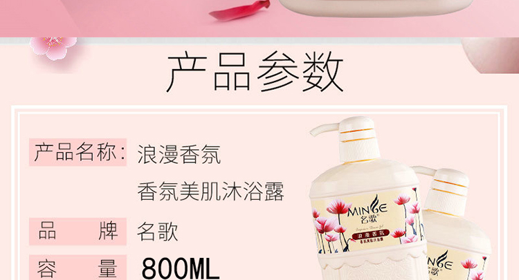 商品名称:名歌持久留香浪漫香氛沐浴露800ml