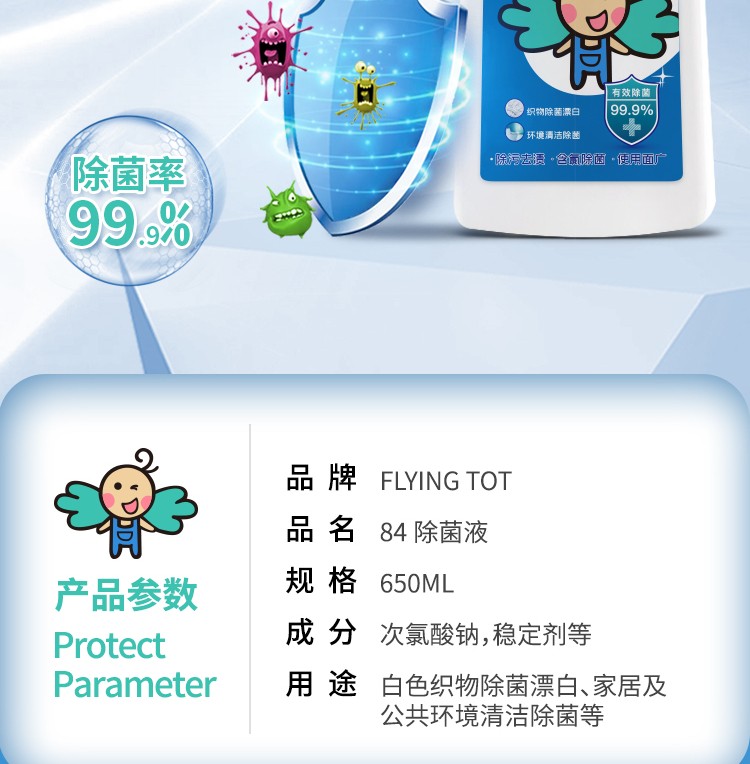 商品名称:FLYING TOT除污去渍84除菌液 X712 650ML/瓶