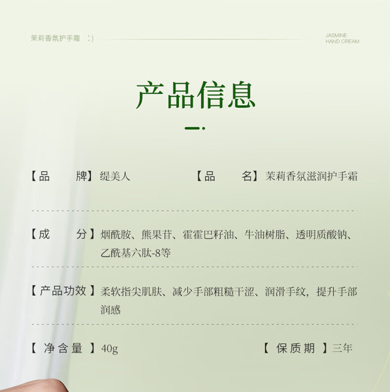 商品名称:缇美人 茉莉香氛滋润护手霜40g*2