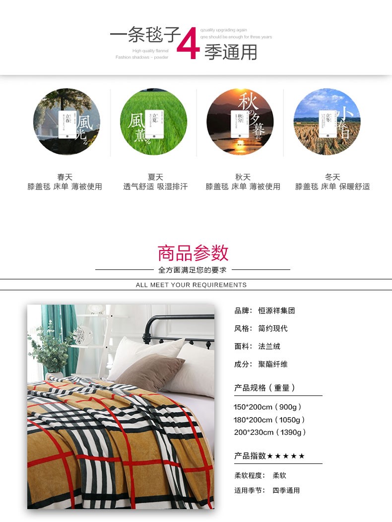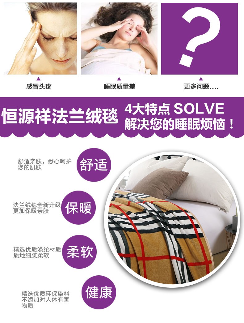 商品名称:恒源祥绅士格子毯1DQ2016180*200CM
