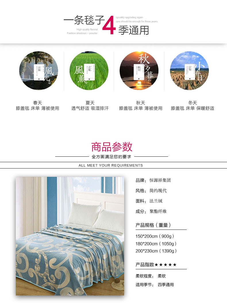 商品名称:恒源祥流金岁月毯1DQ2016180*200CM