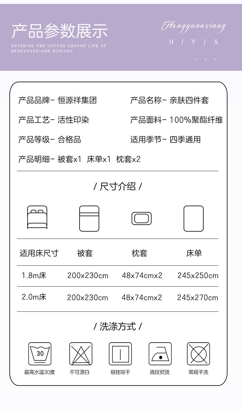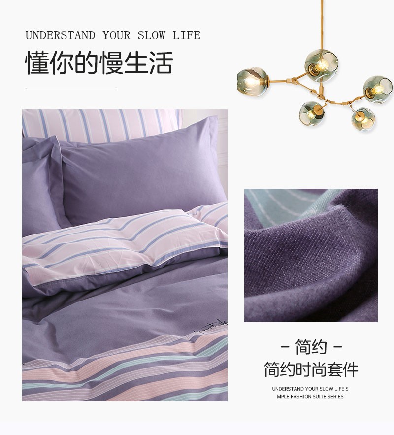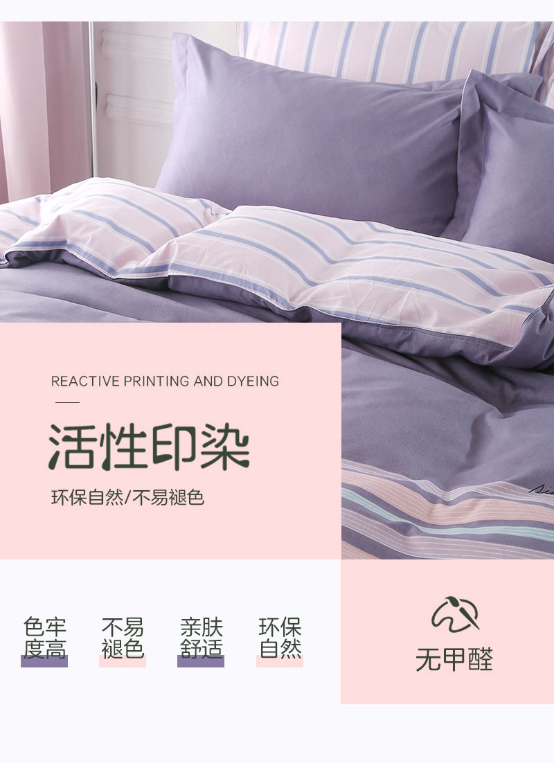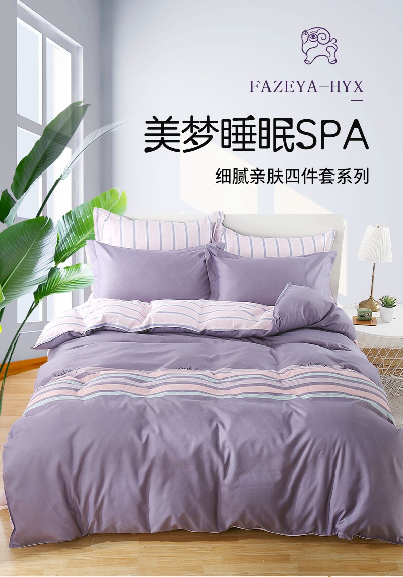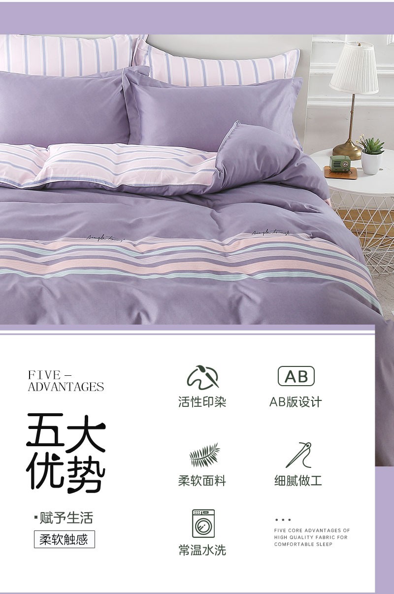 悠梦嘉居YJ-1211云柔素雅四件套 落日紫霞 床上用品印花套件双人200*230四件套1.5/1.8床通用纯色风(内蒙、新疆、西藏、青海、宁夏、甘肃运费另算)