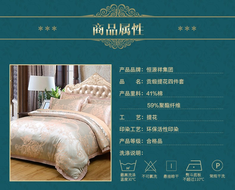 商品名称:恒源祥色织提花四件套 赫本花园1DB1613被套:200x230cm床单:245x270cm枕套:48x74cm*2