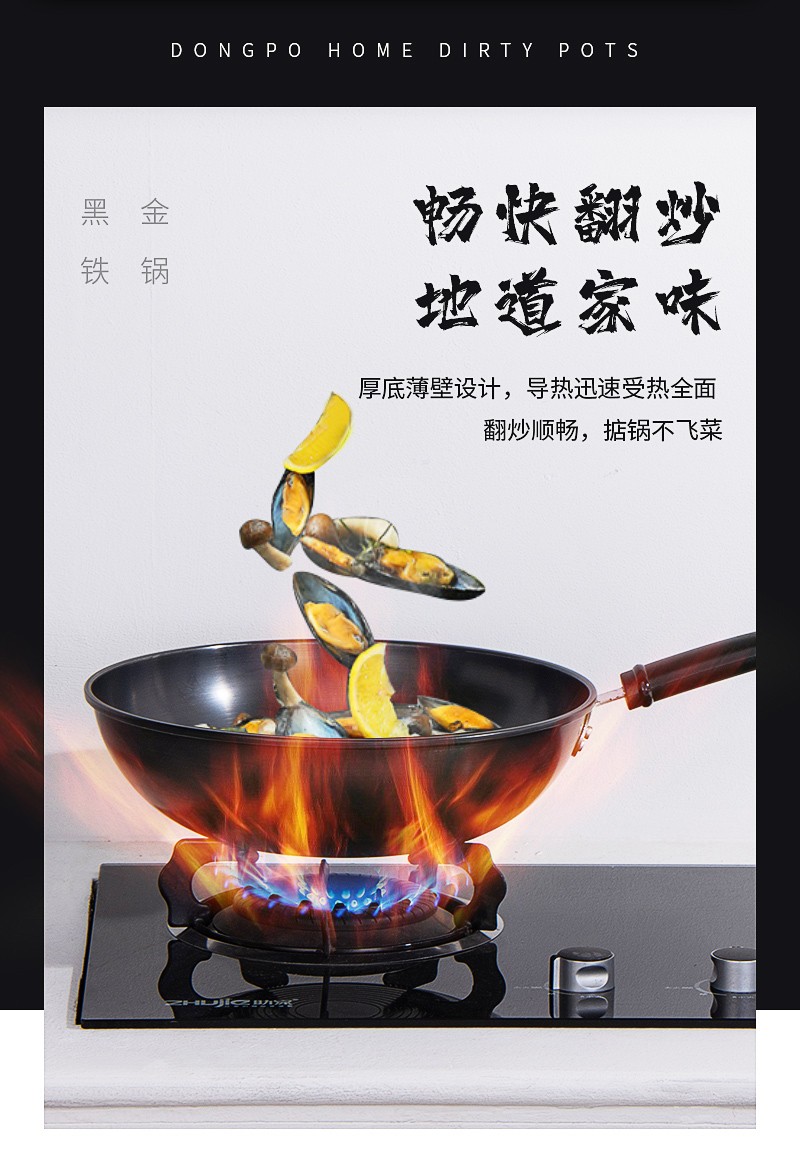商品名称:千澈 张小泉东坡家黑金铁锅 精铁