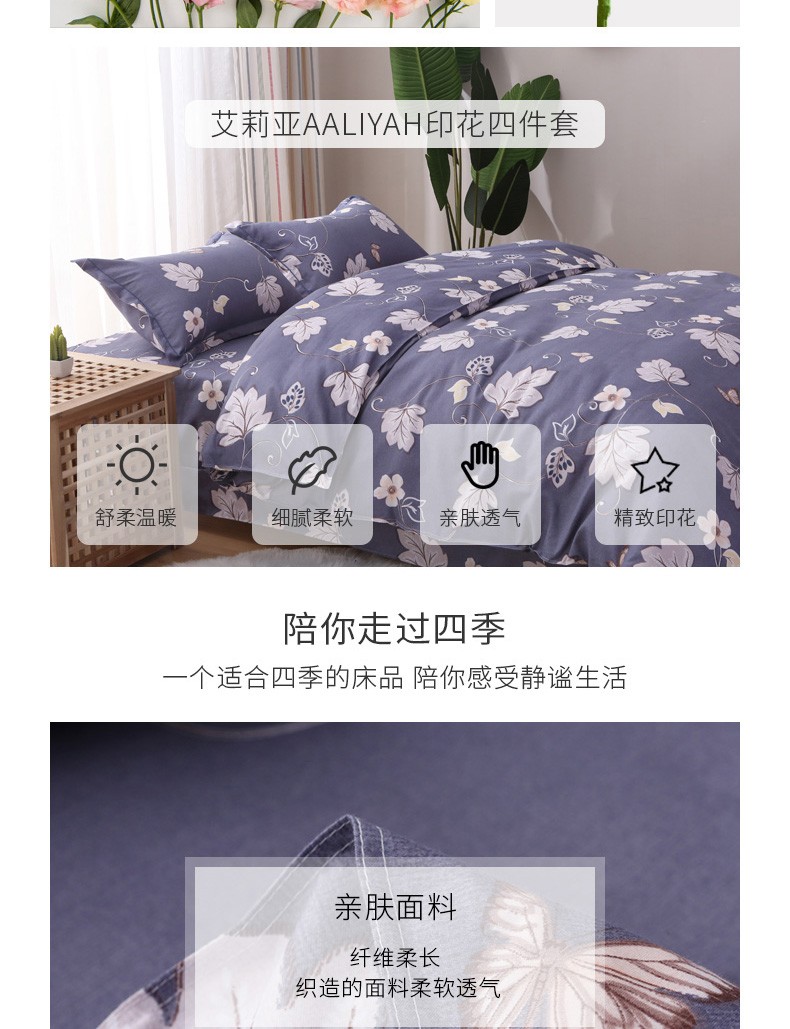 悠梦嘉居YJ-1211云柔素雅四件套 落日紫霞 床上用品印花套件双人200*230四件套1.5/1.8床通用纯色风(内蒙、新疆、西藏、青海、宁夏、甘肃运费另算)