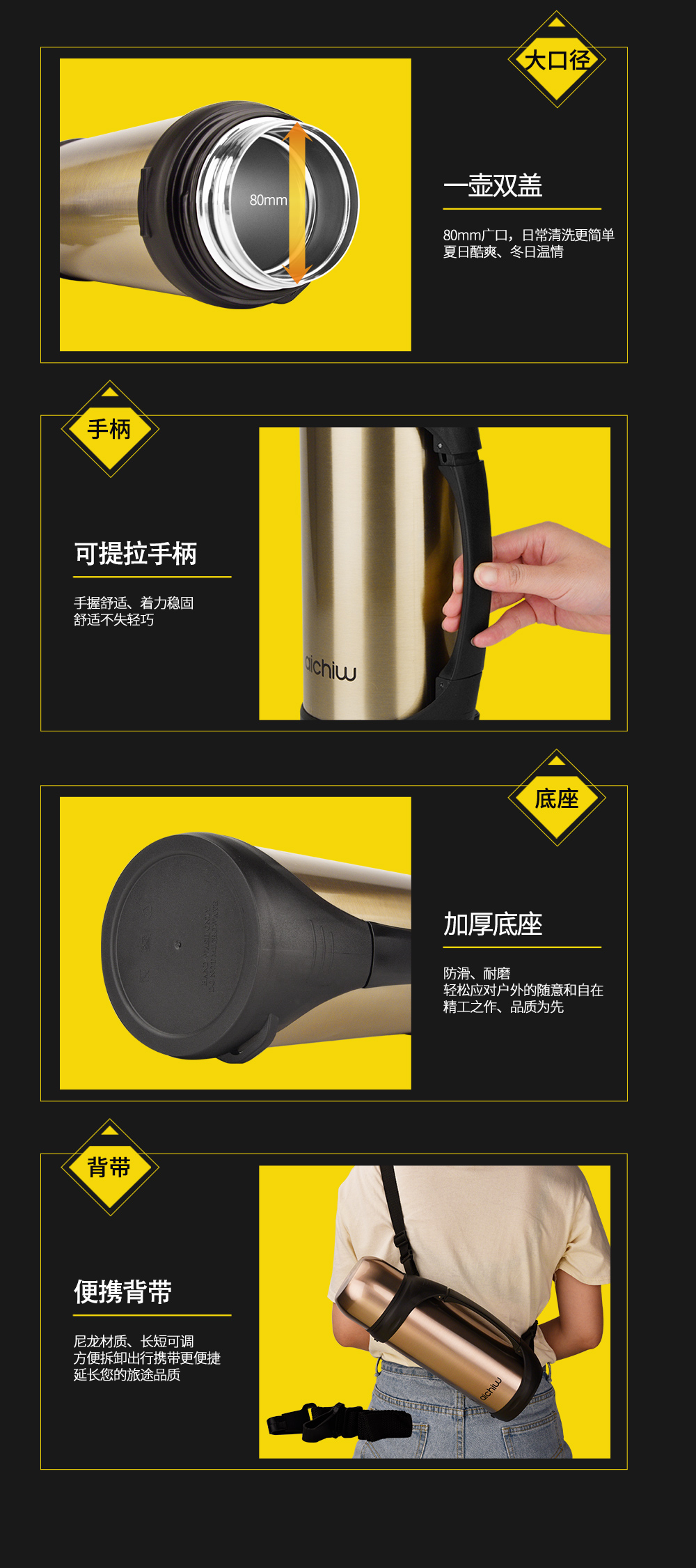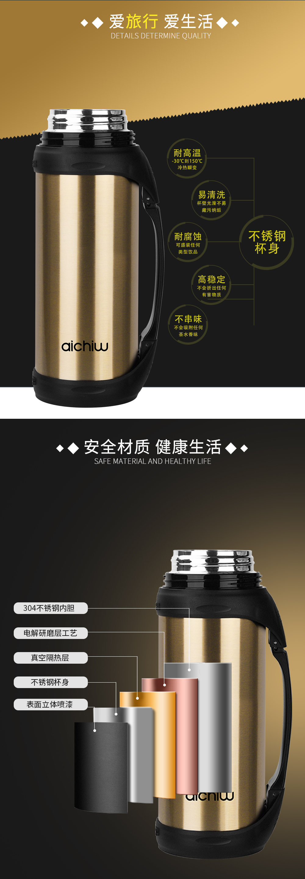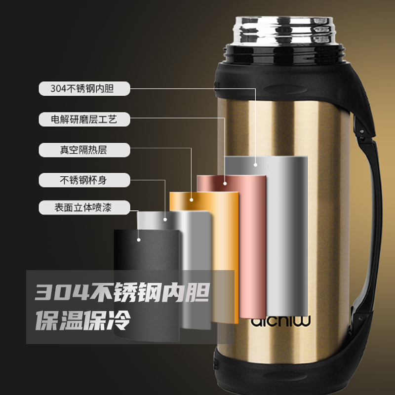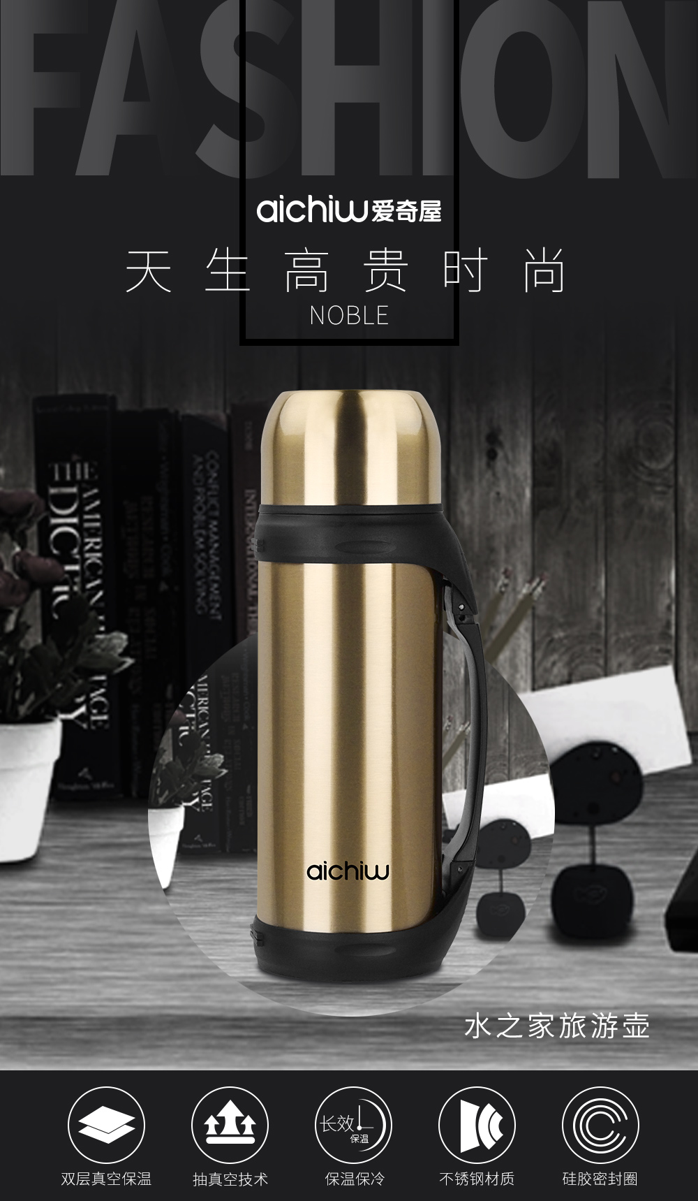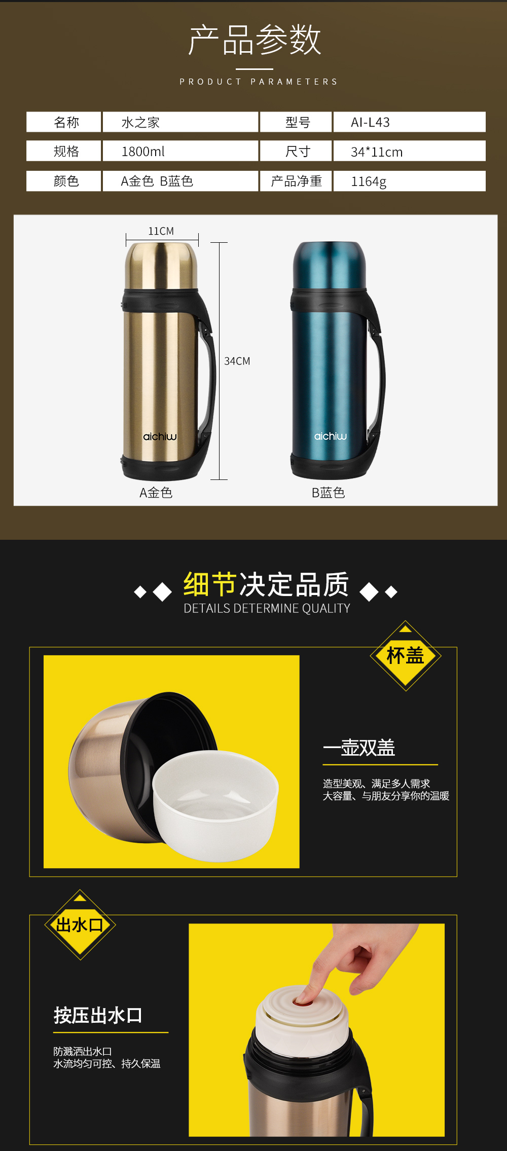 商品名称:爱奇屋 水之家保温壶居家户外旅行大容量便携不锈钢运动壶AI-L43 1800ml 金/蓝