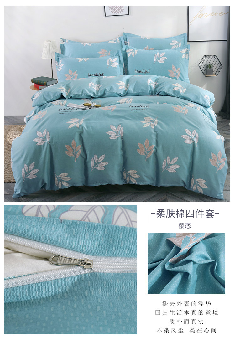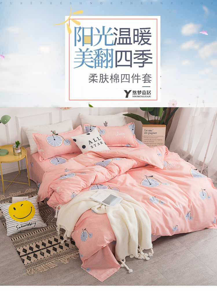 悠梦嘉居 YJ-1009 柔肤棉四件套(床单220x230cm)樱恋/旅程 二色可选下单备注颜色(内蒙、新疆、西藏、青海、宁夏、甘肃不发)