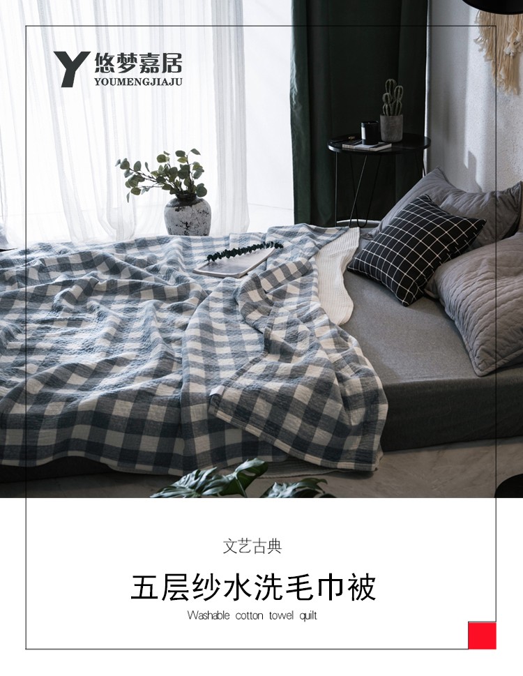 悠梦嘉居 YB-1087 五层水洗毛巾被180*200cm 100%棉 格宕(内蒙新疆西藏、青海宁夏甘肃不发)