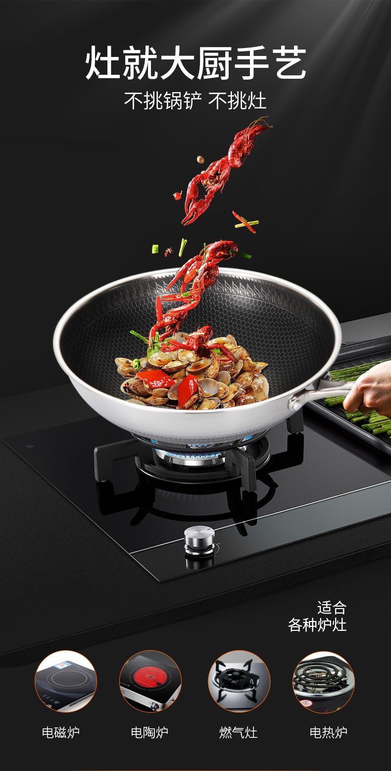 卡兰思 卡奇复合钢炒锅 KLS-CG222 不惧铲 不粘锅 电磁炉煤气灶通用