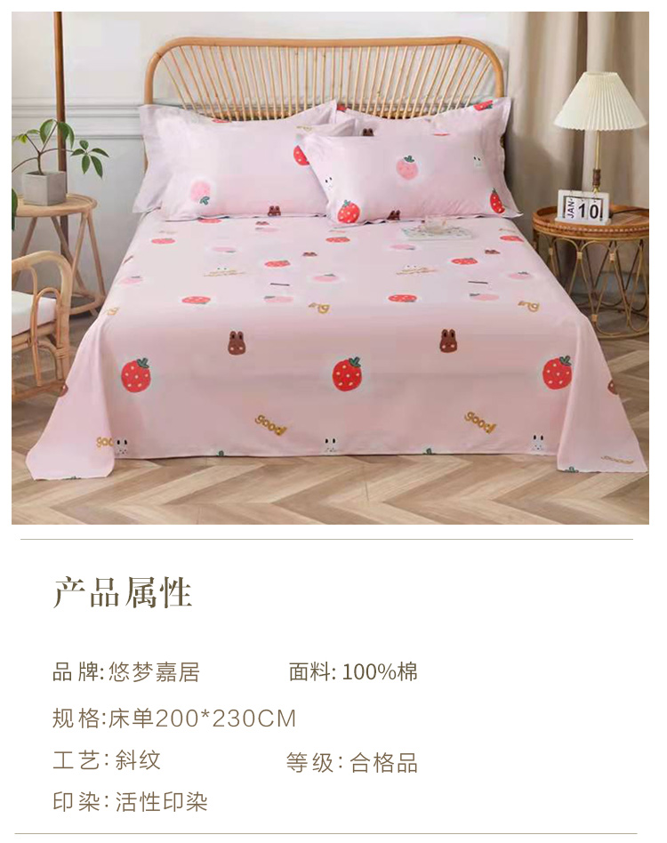 悠梦嘉居YJ-1260全棉床单200*230,单双人可用100%棉 格调(内蒙、新疆、西藏、、宁夏、甘肃青海运费另算)