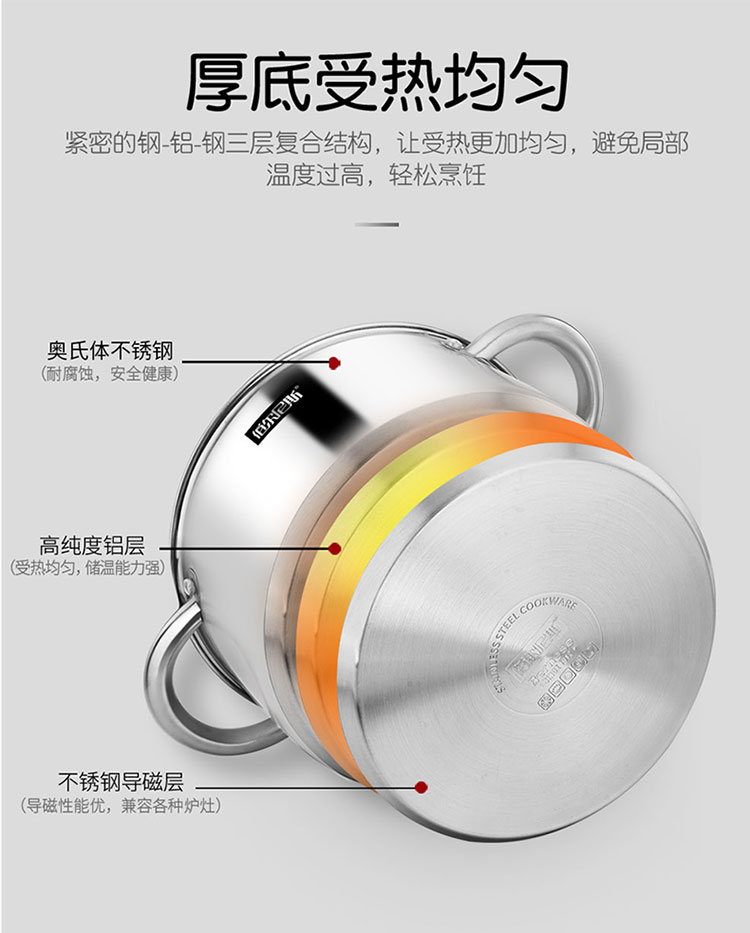 伯尔尼斯金钢两件套不粘锅炒锅不锈钢蒸锅锅具套装厨具两件套电磁炉通用