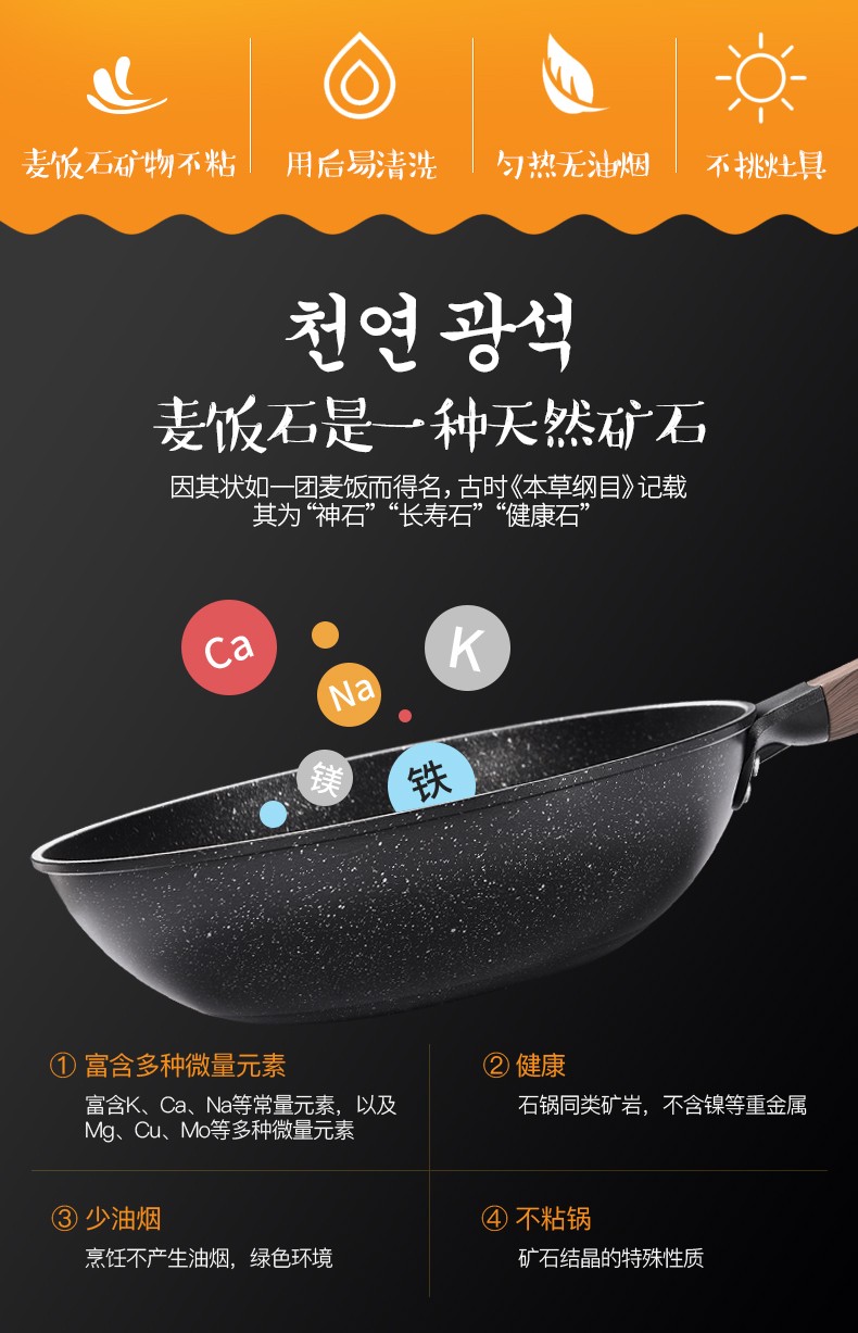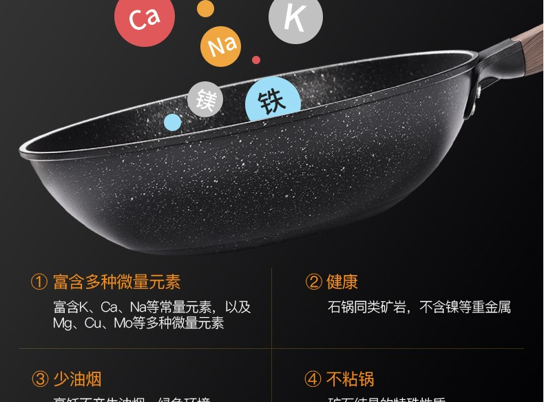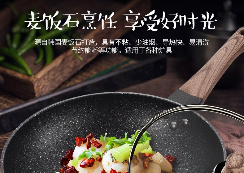 商品名称:卡兰思金爵纳米能量麦饭石炒锅电磁炉煤气灶通用KLS-CG219 6972746627404