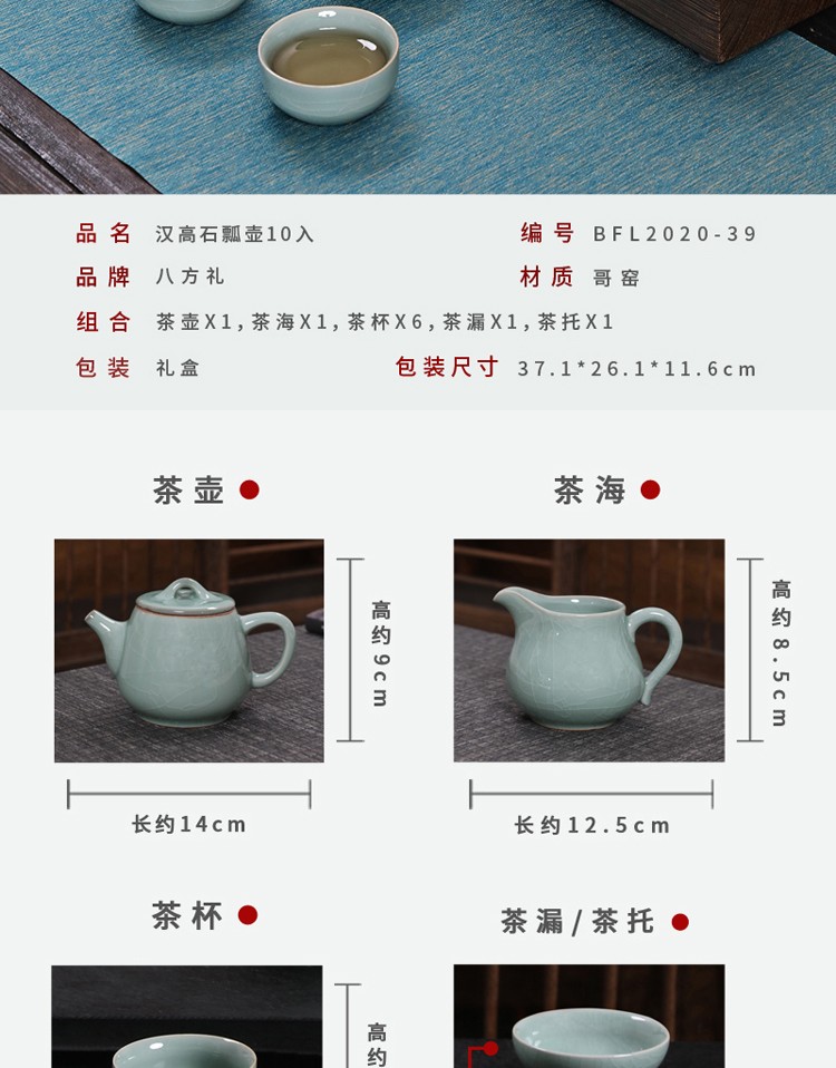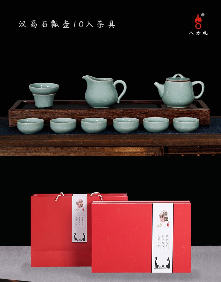 八方礼 哥窑鼎盛辉煌10入茶具 哥窑/绿色 GY2016-1 西北六省不包邮