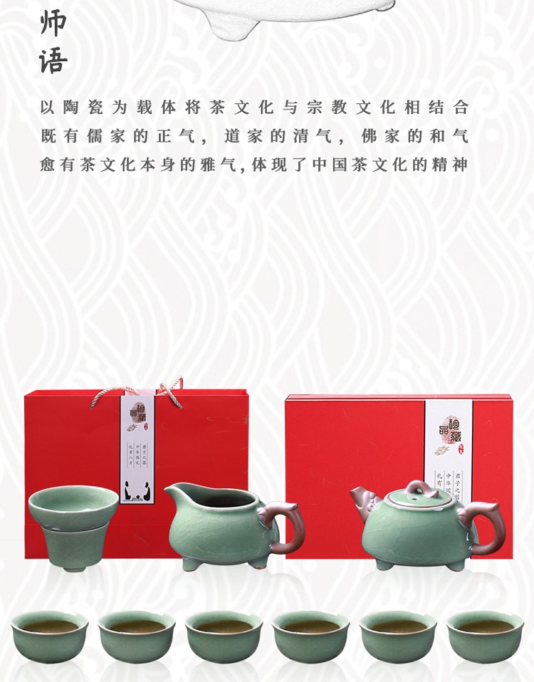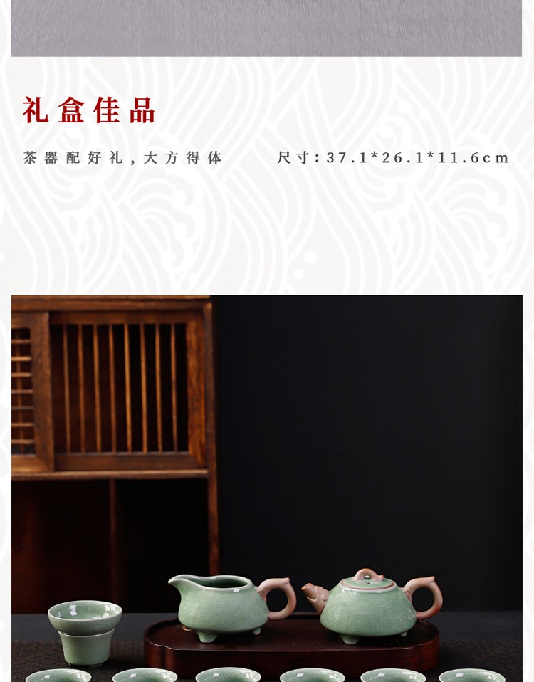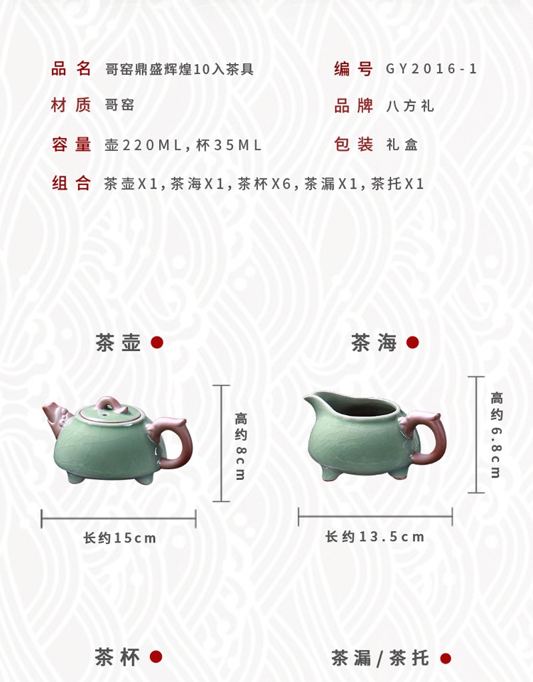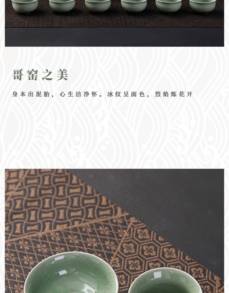 商品名称:八方礼 哥窑鼎盛辉煌10入茶具 哥窑/绿色 GY2016-1 西北六省不包邮