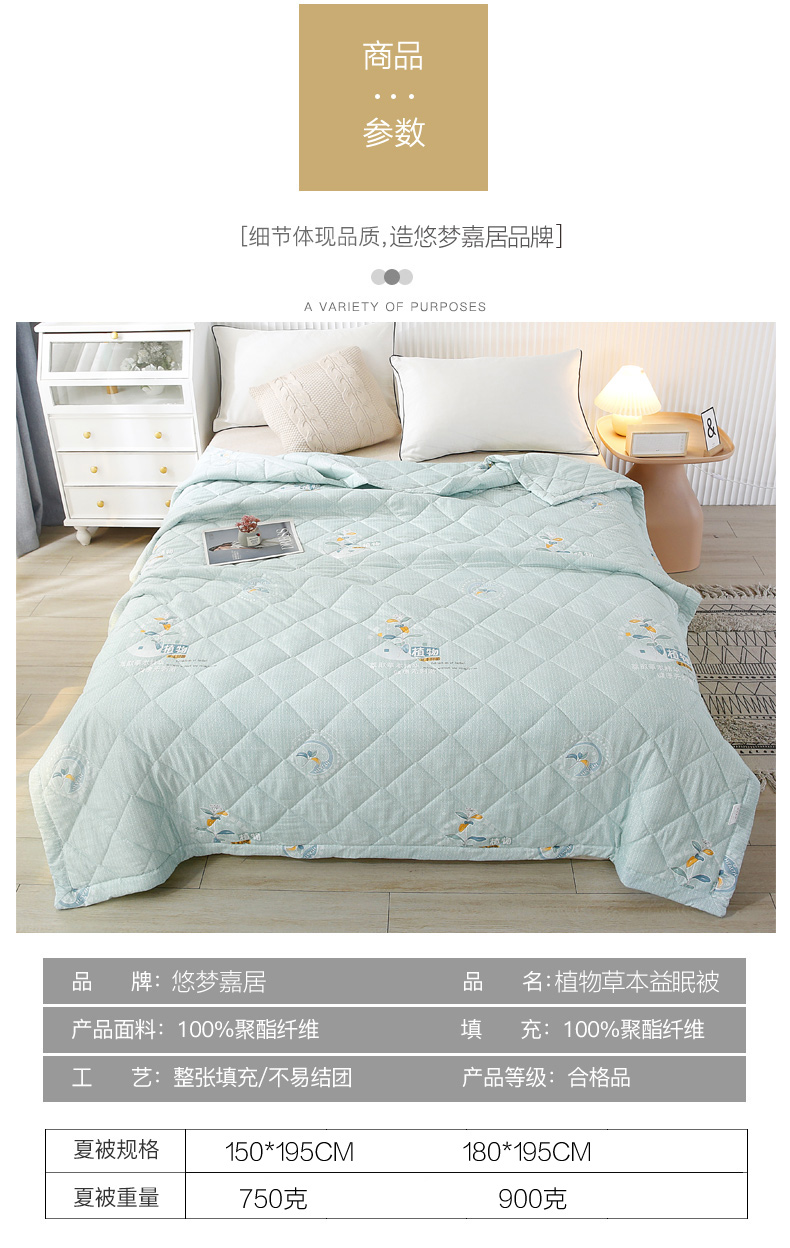 商品名称:悠梦嘉居 YB-1220植物草本益眠被 单双人空调被 150*200(内蒙、新疆、西藏、青海、宁夏、甘肃运费另算)