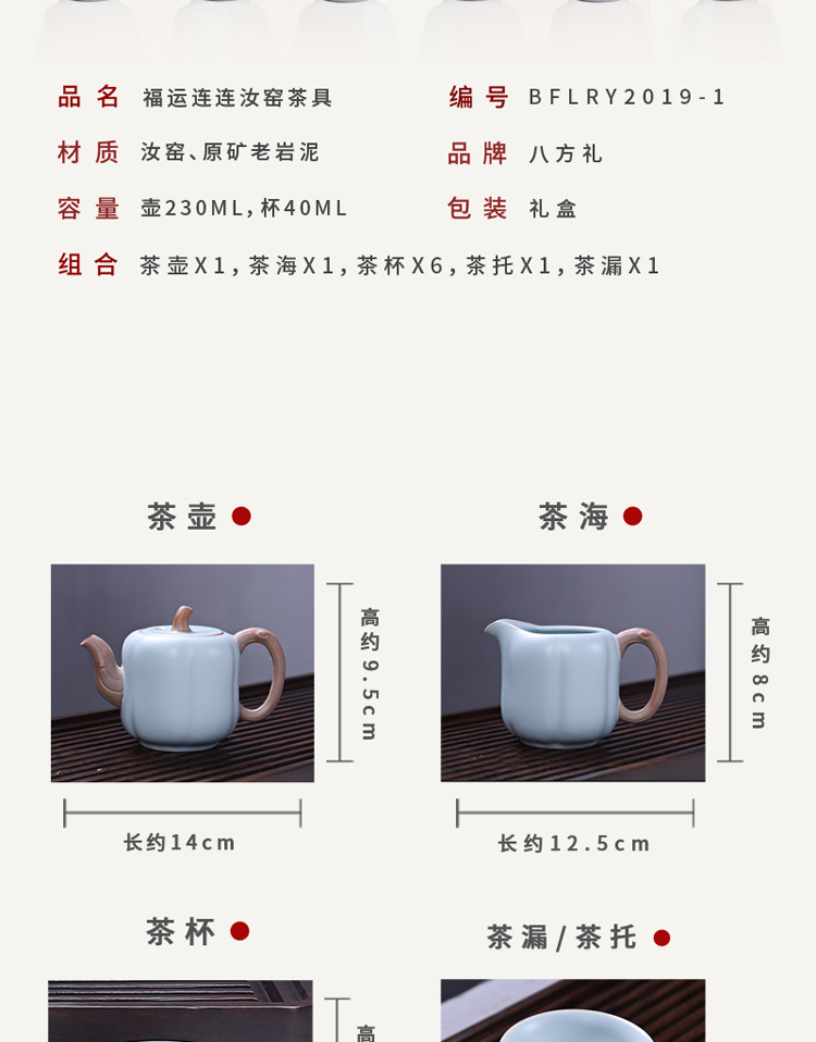 商品名称:八方礼 福运连连汝窑茶具 BFLRY2019-1 6972391250125