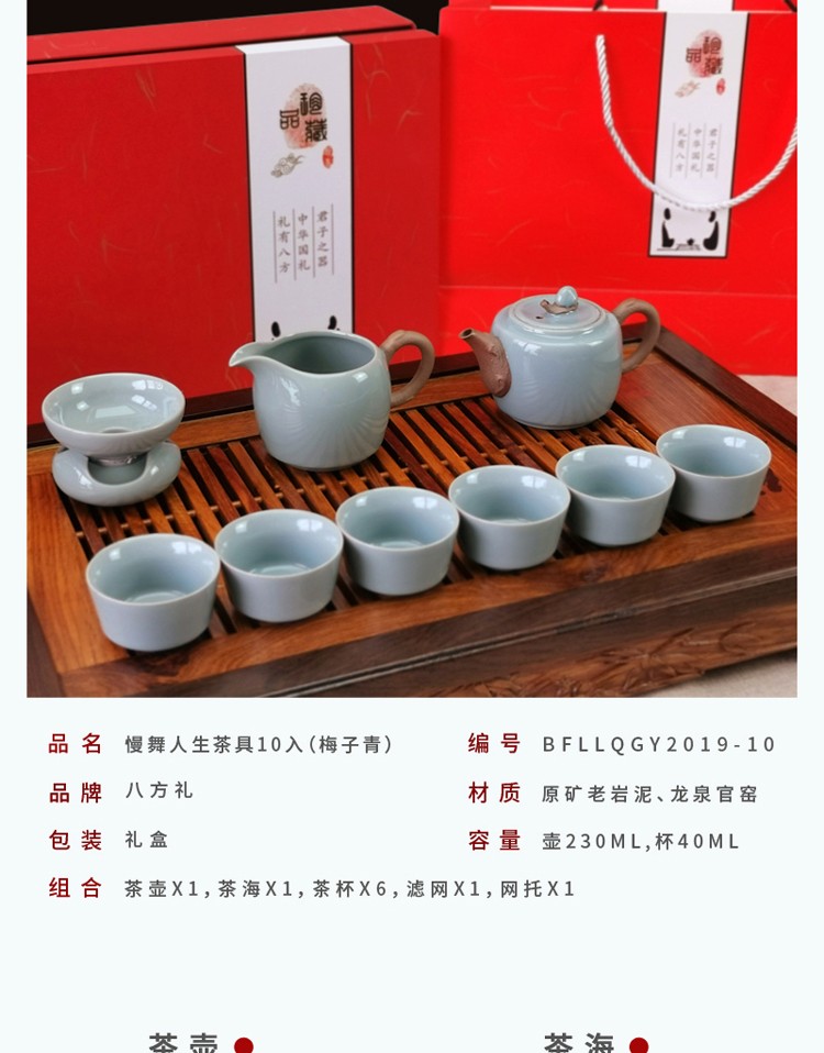 商品名称:八方礼 慢舞人生茶具10入 梅子青 BFLLQGY2019-10 6972391250040