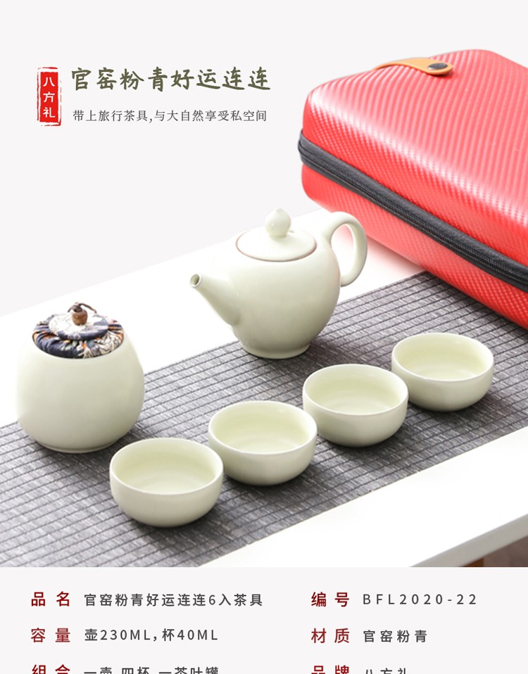 商品名称:八方礼 粉青好运连连6入茶具 BFL2020-22 06972391250675