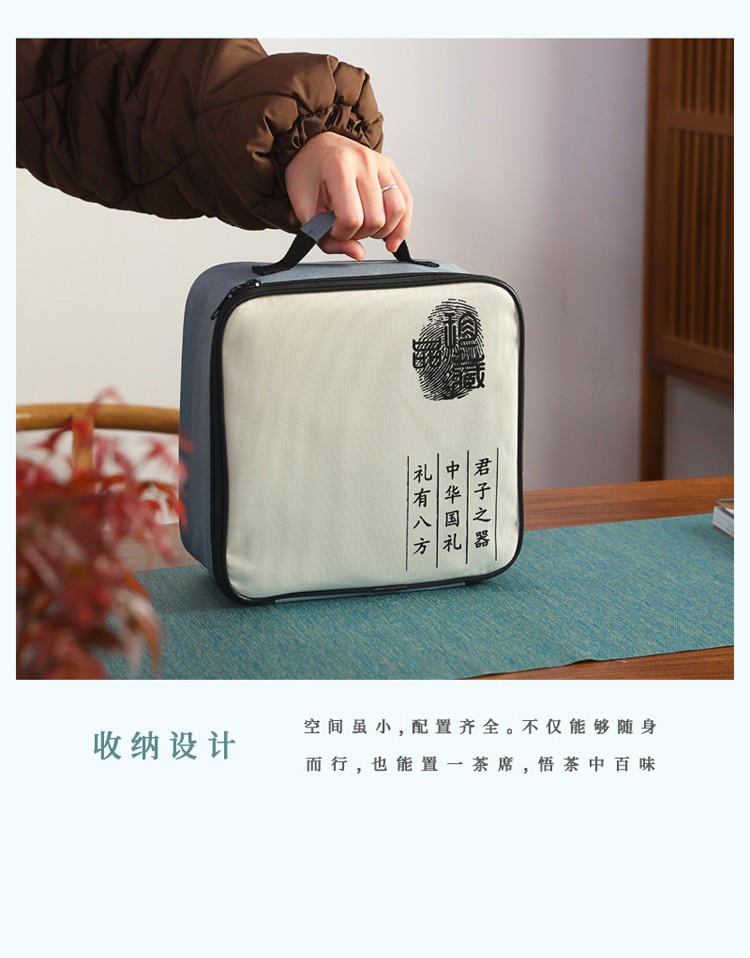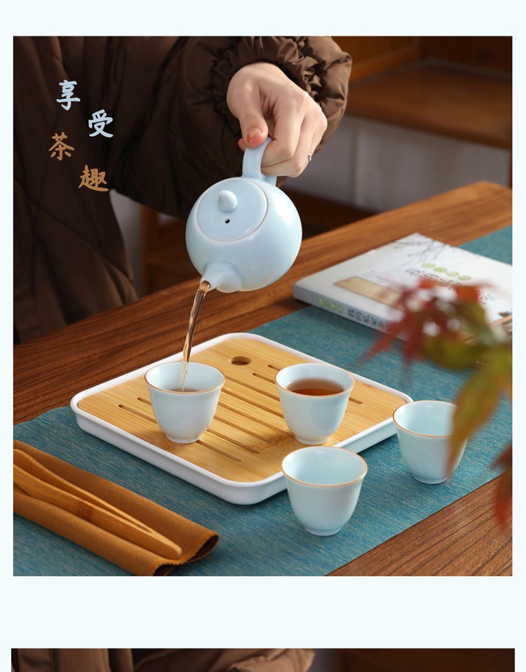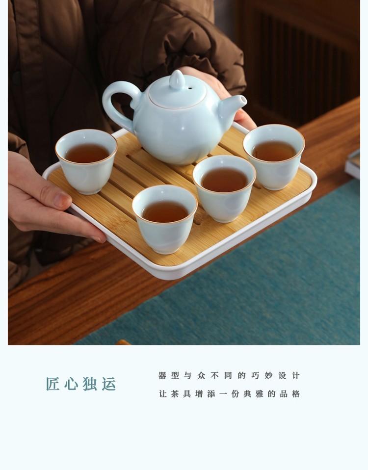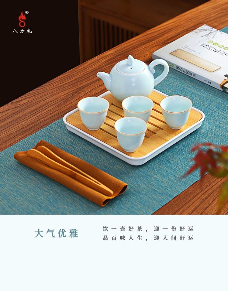 八方礼陶瓷茶具 官窑手握四方茶具 家用或商务送礼 开片11头 粉青 BFLGY-8