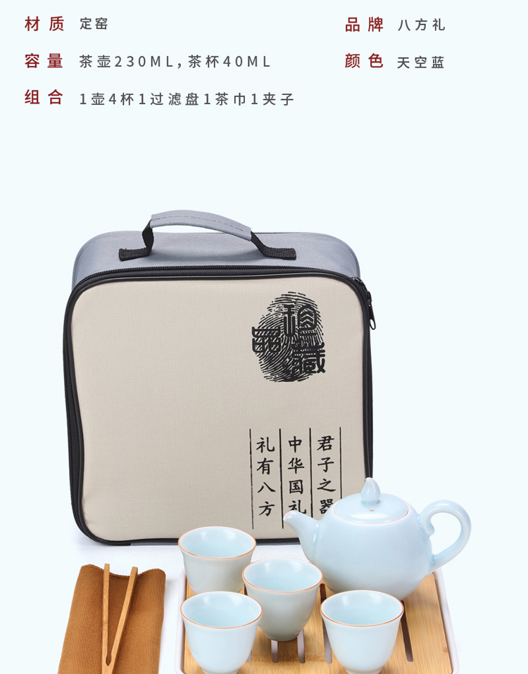 商品名称:八方礼 好运来8入茶具套组 BFL2021-1天空蓝 6972391250835