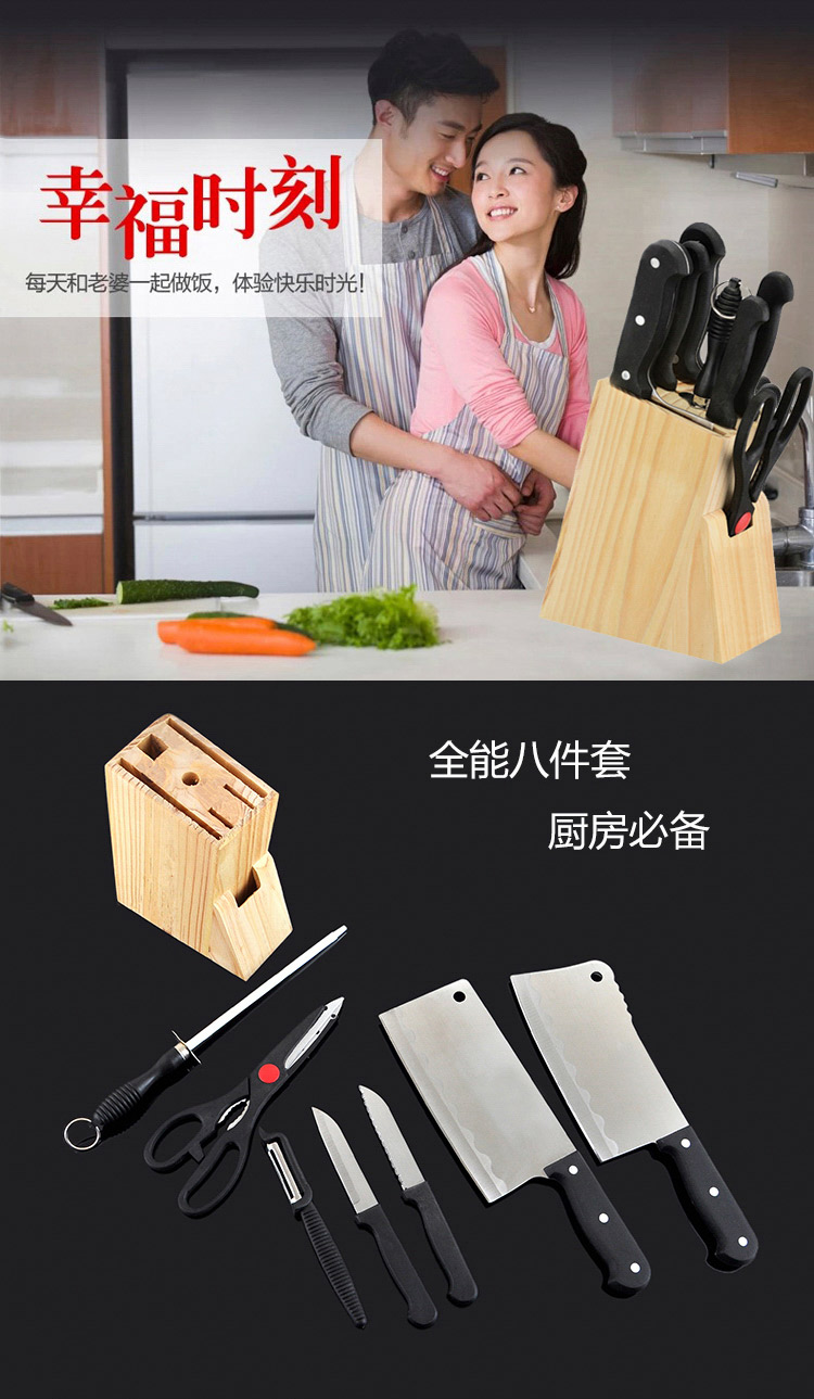 万德霍美食刃八件套(切片刀20cm+砍骨刀27.5cm+水果牙刀19cm+水果刀18.8cm+厨房剪21.2cm+削皮器16.5cm+磨刀棒27.2cm) WDH-G0140559