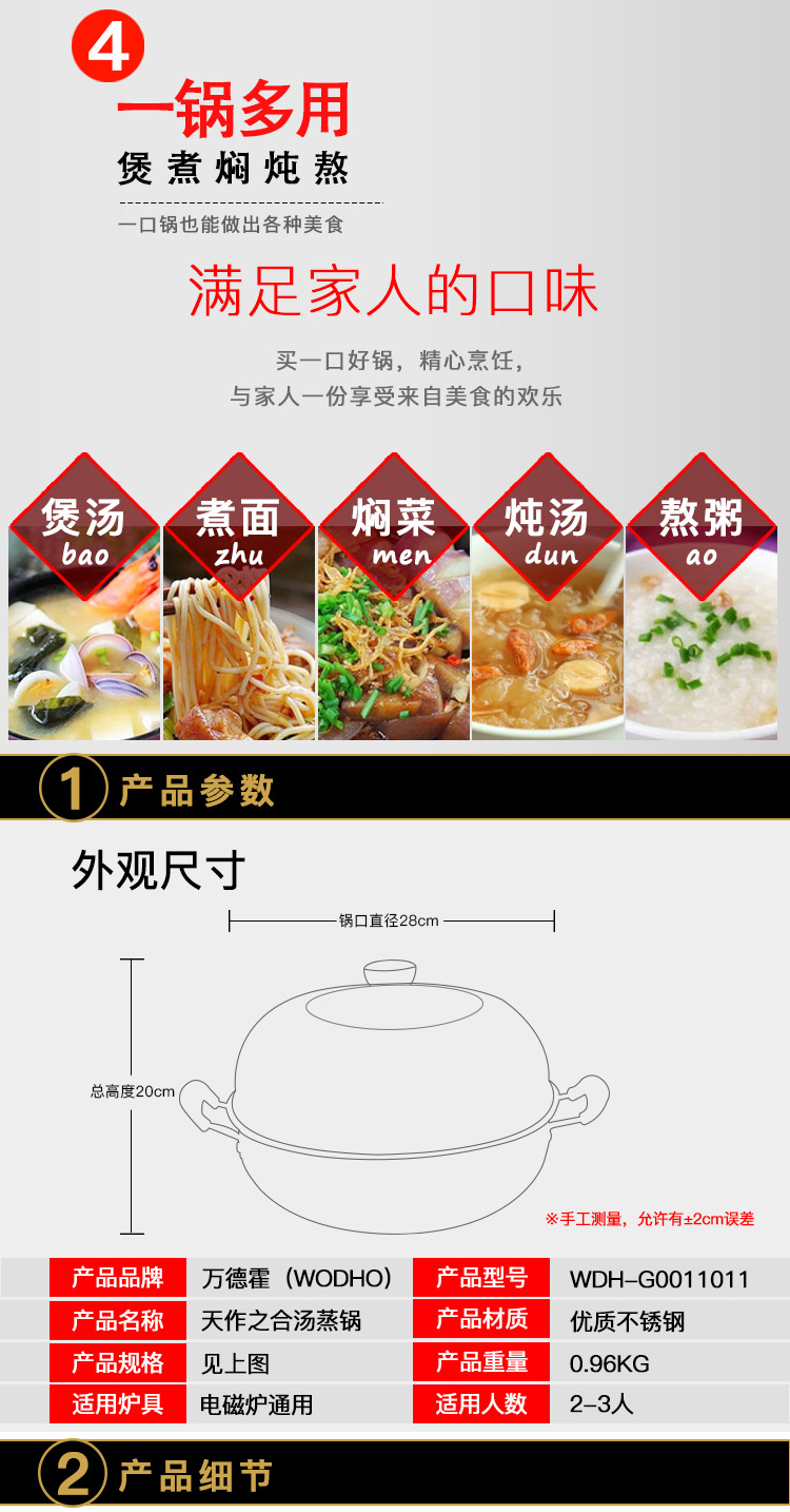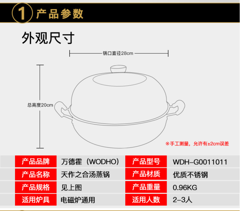 商品名称:万德霍天作之合汤蒸锅28cm WDH-G0011011
