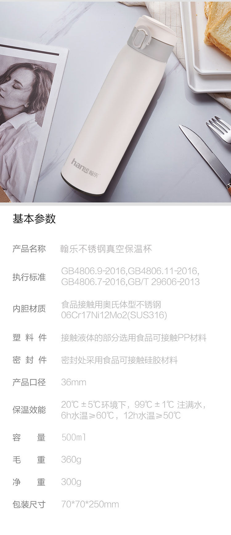 翰乐 不锈钢真空保温杯500ml 新疆、西藏、青海不发货,内蒙、海南运费另外加8元