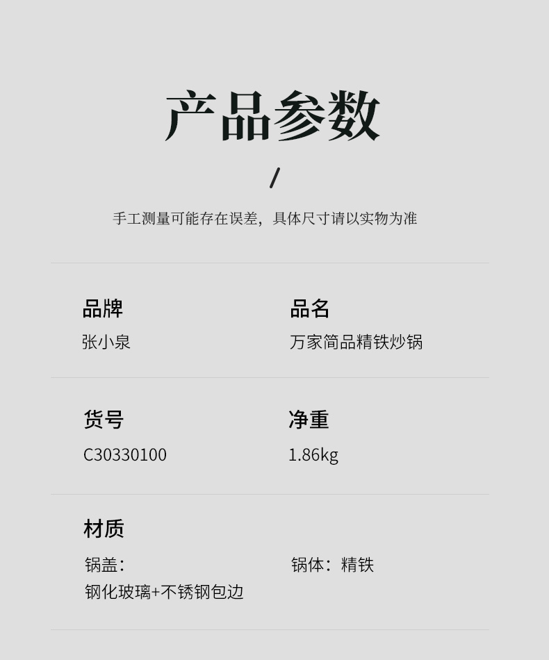 商品名称:张小泉 万家简品精铁炒锅 C30330100 32CM 6957389114016