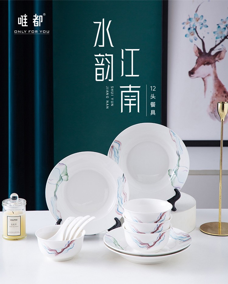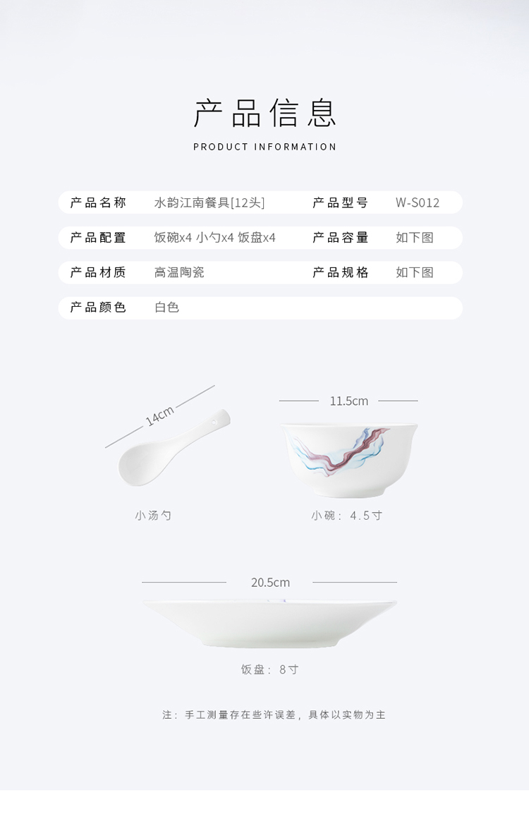 商品名称:唯都水韵江南餐具(4.5寸饭碗*4+小勺*4+8寸餐盘*4)W-S012