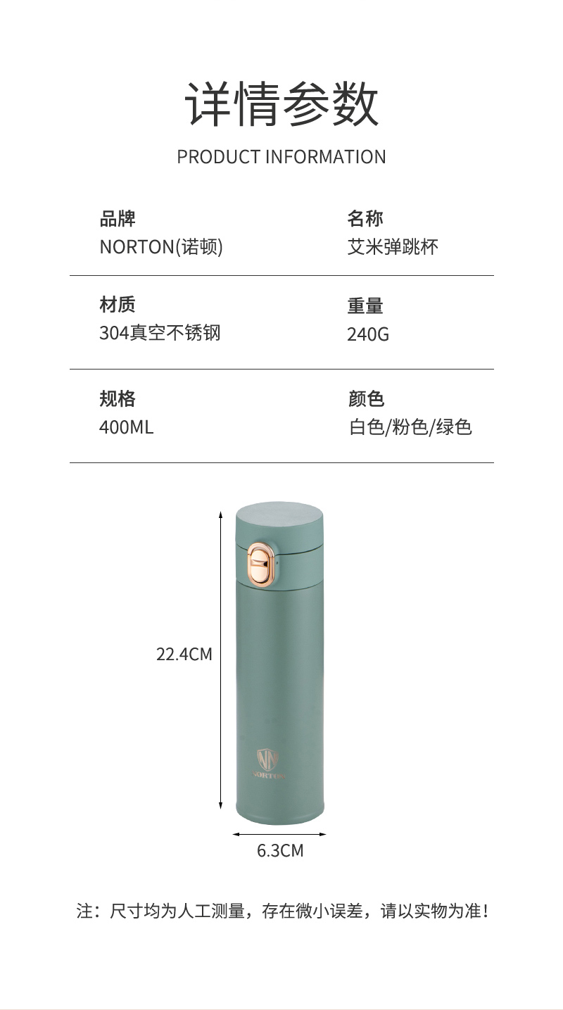 商品名称:诺顿 艾米弹跳杯 5GAM400 400ml 白/ 粉/绿 可选下单备注颜色