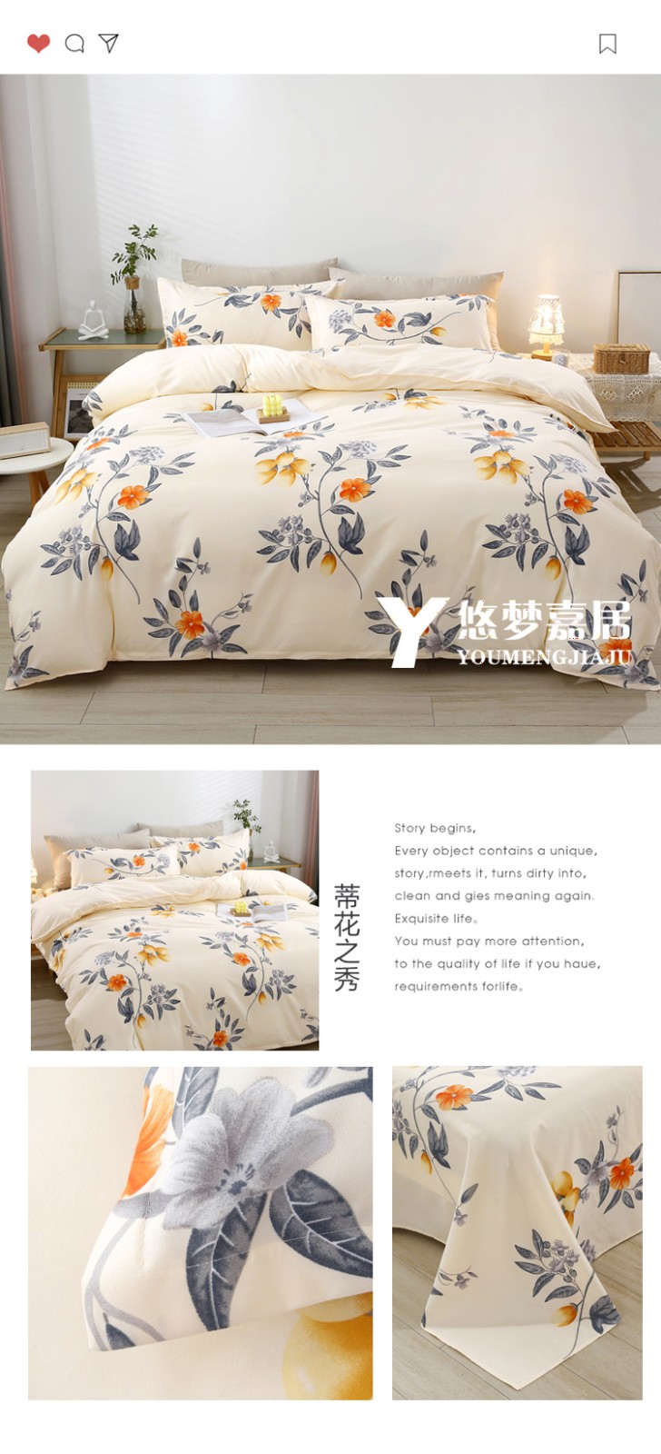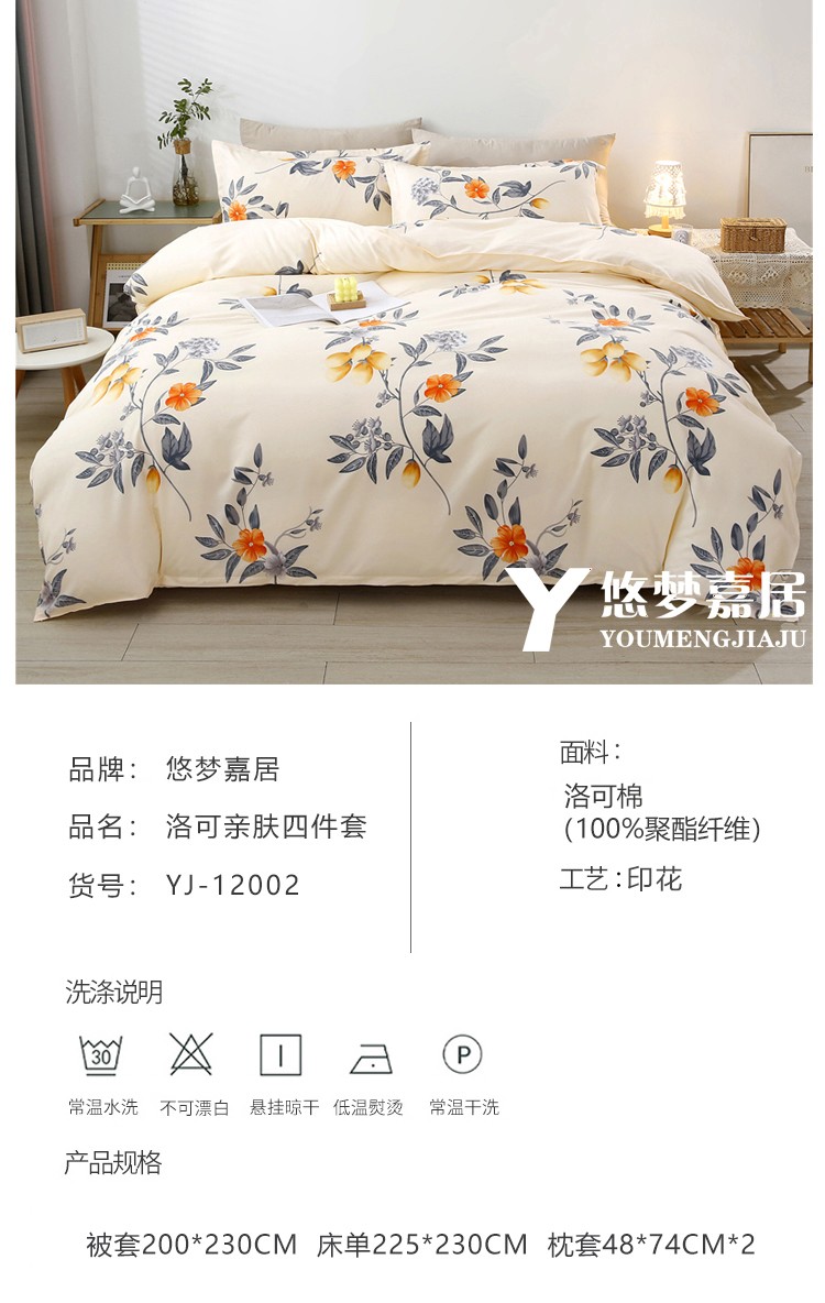 商品名称:悠梦嘉居 YJ-12002 洛可亲肤四件套200*230CM 蒂花之秀 (内蒙、新疆、西藏、青海、宁夏、甘肃运费另算)