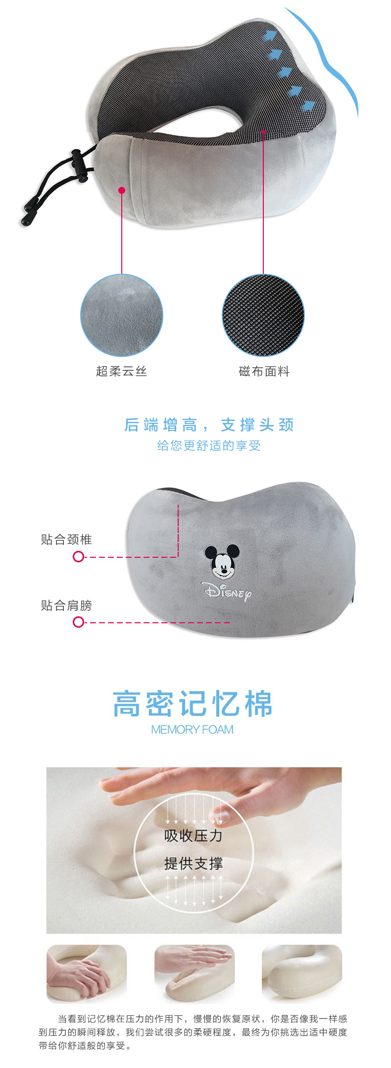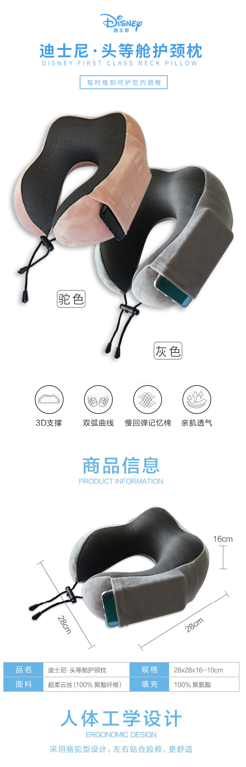 迪士尼 头等舱护颈枕 驼色/灰色可选 下单备注颜色