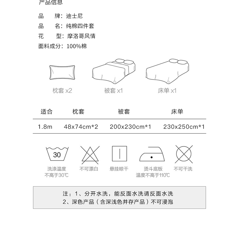 迪士尼 DJM17-2023B 纯棉四件套(摩洛哥)床单230x250cm 甘肃、宁夏、青海、海南、内蒙、新疆 乌海、西藏另加10元