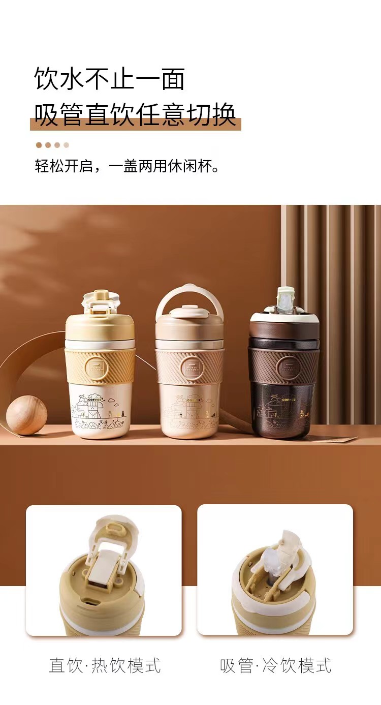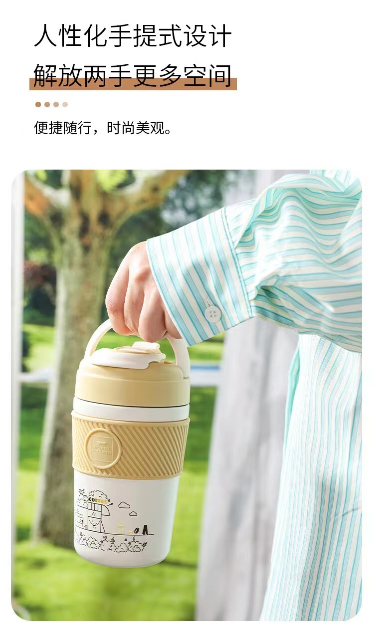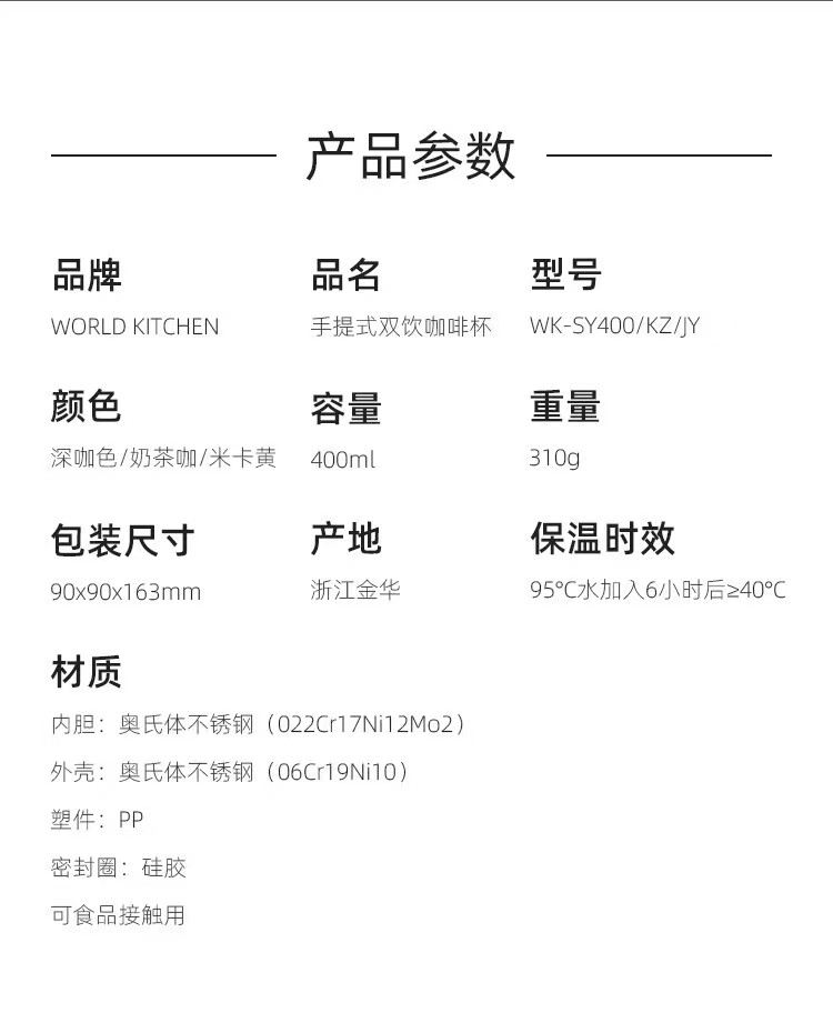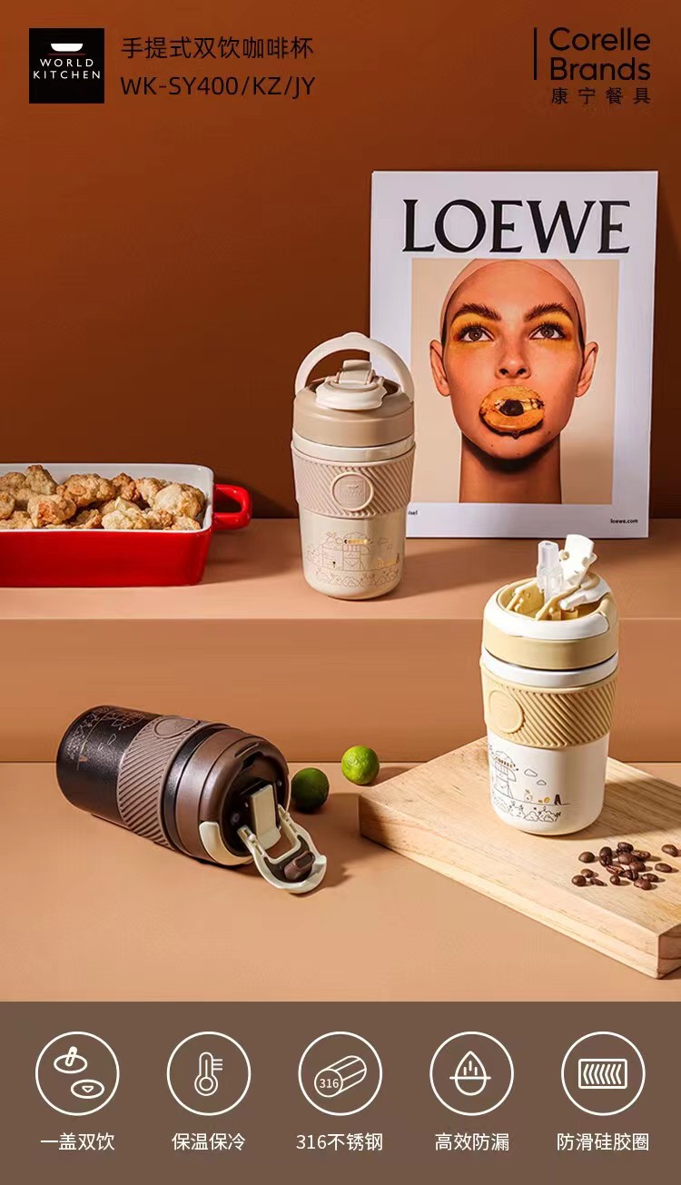 商品名称:康宁 手提式双饮咖啡杯 WK-SY400/KZ/JY 400ml 深咖色