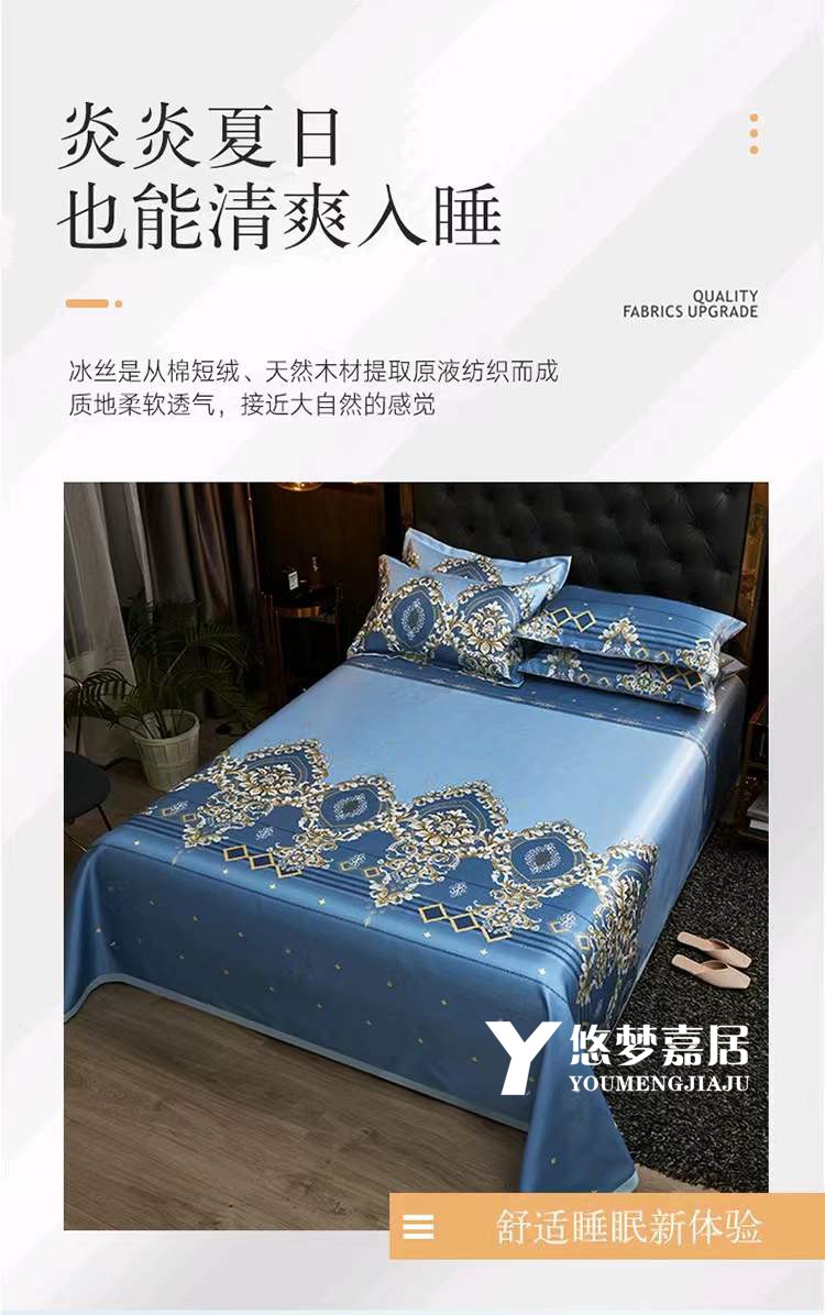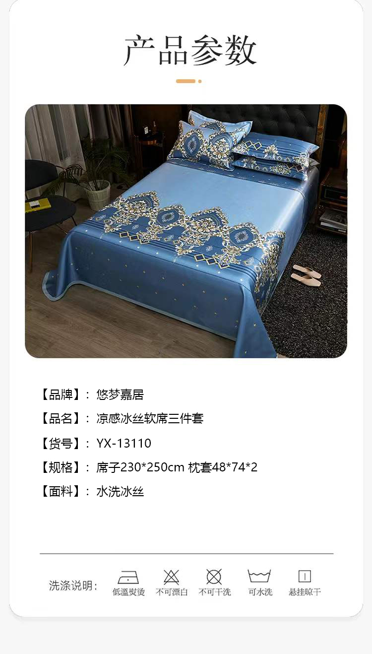 悠梦嘉居 YX-13110 凉感冰丝软席三件套-欧漫情调 230*250CM(内蒙、新疆、西藏、青海、宁夏、甘肃运费另算)