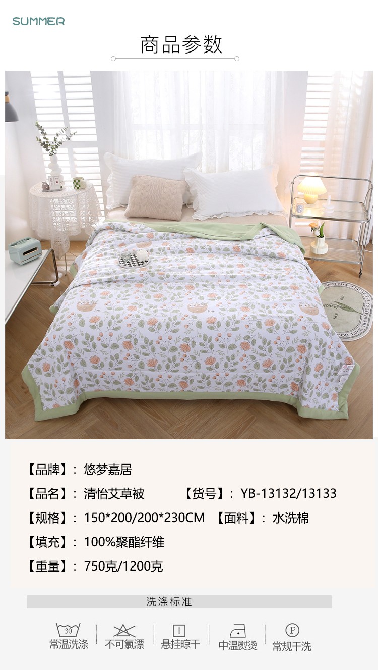 商品名称:悠梦嘉居 YB-13132 清怡艾草被 150*200 花香醉梦(内蒙、新疆、西藏、青海、宁夏、甘肃运费另算)