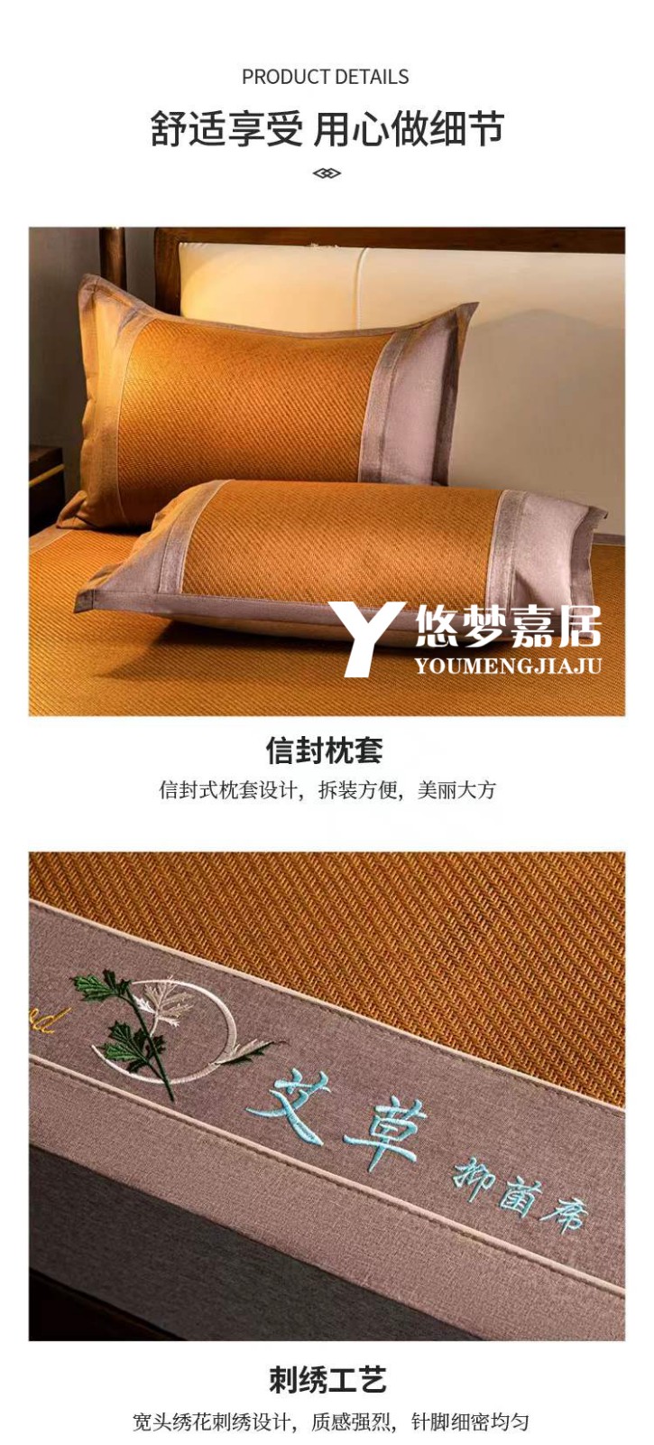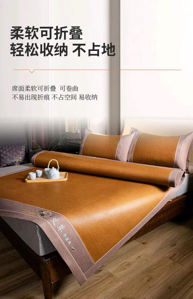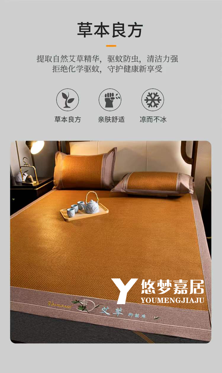 悠梦嘉居 YX-13113 艾草双面藤席三件套 180*200 棕色(内蒙、新疆、西藏、青海、宁夏、甘肃运费另算)