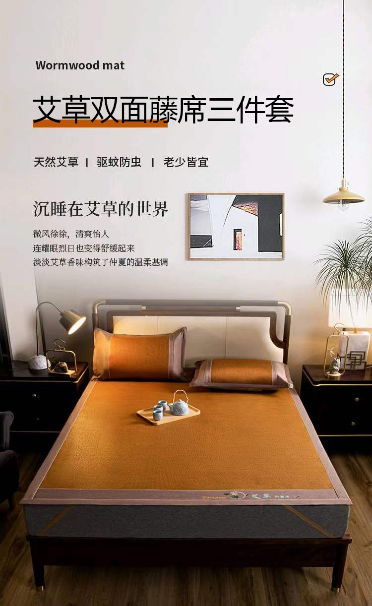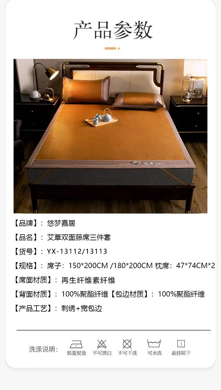 商品名称:悠梦嘉居 YX-13113 艾草双面藤席三件套 180*200 棕色(内蒙、新疆、西藏、青海、宁夏、甘肃运费另算)