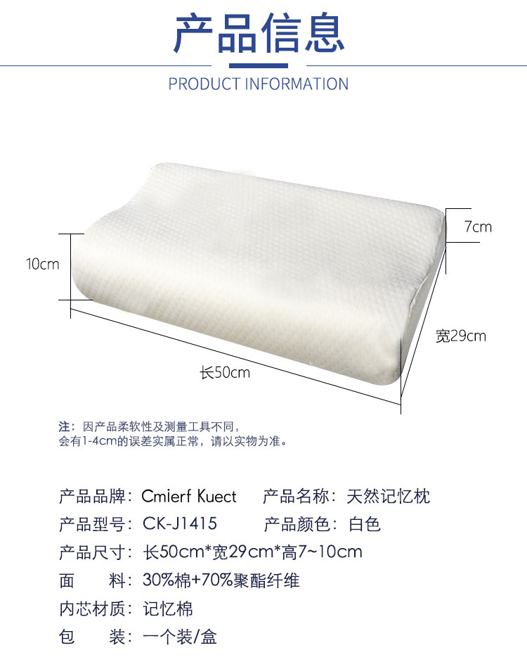Cmierf Kuect (中国CK)天然记忆枕 CK-J1415 白色 (新疆,西藏,宁夏,青海,内蒙古,甘肃,黑龙江,吉林,辽宁不发货)